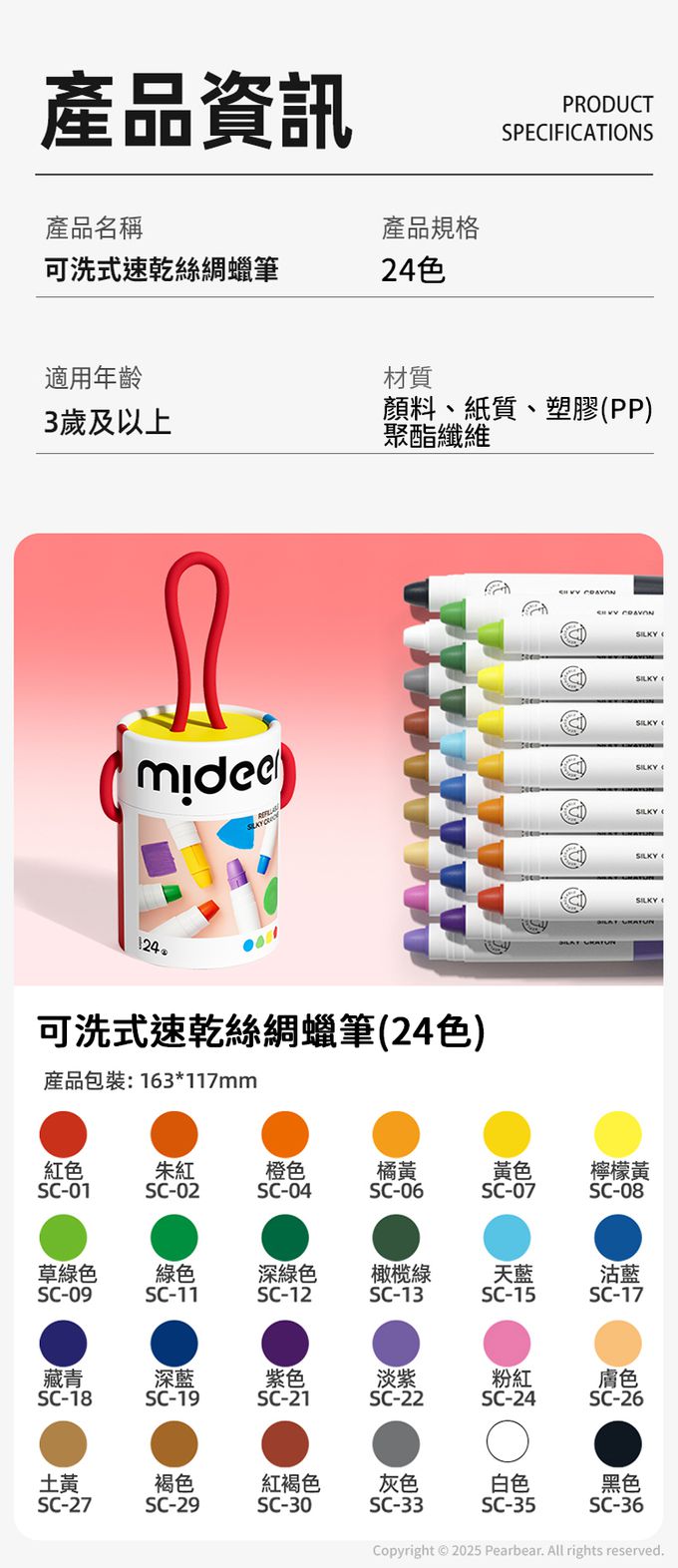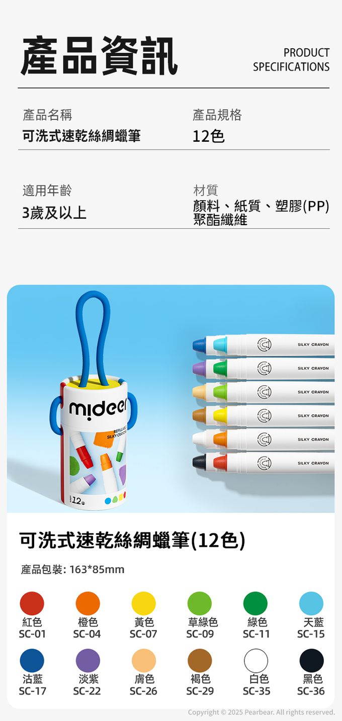 可洗式速乾絲綢蠟筆(12色)(2025新版)