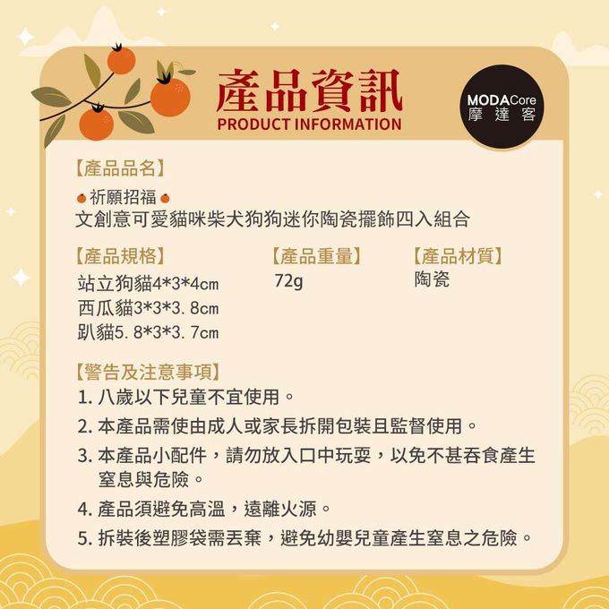 品名:◉祈願招福◉文創意可愛貓咪柴犬狗狗迷你陶瓷擺飾四入組合 開運開心
