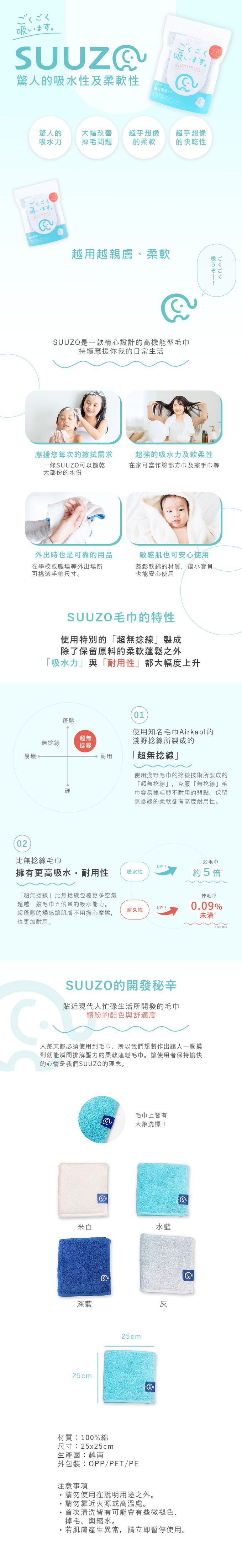 驚人的吸水性及柔軟性
