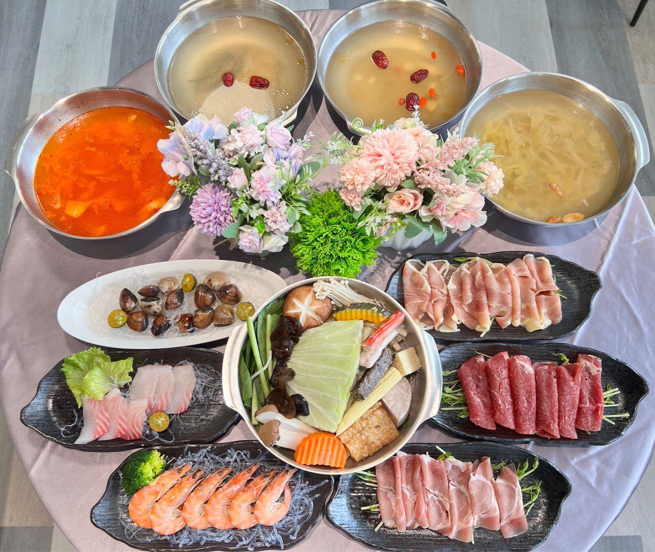 專案贈送兩人份小火鍋套餐,每份皆附湯底六擇一、主餐肉品六擇一(蛤蜊需加價)、附餐、菜盤。亦可現場加購$380/份。