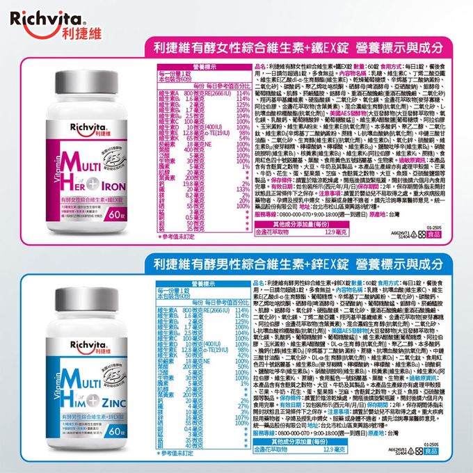 Richvita利捷維 - 有酵女性綜合維生素+鐵EX錠 60錠x2瓶