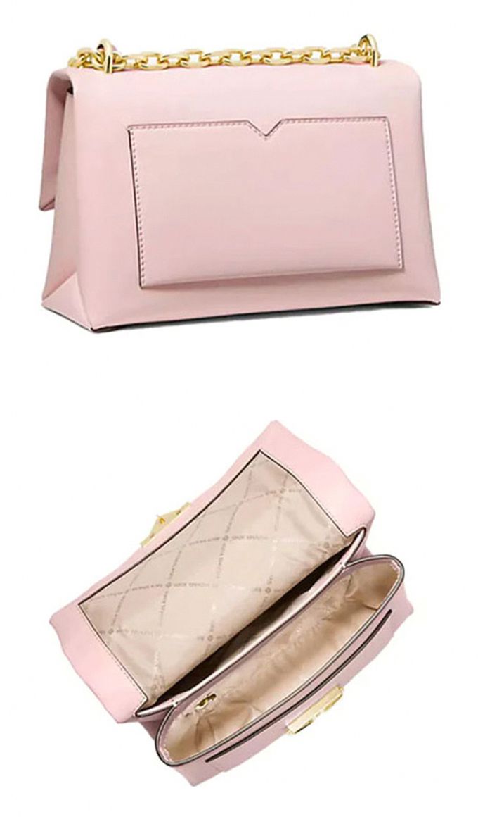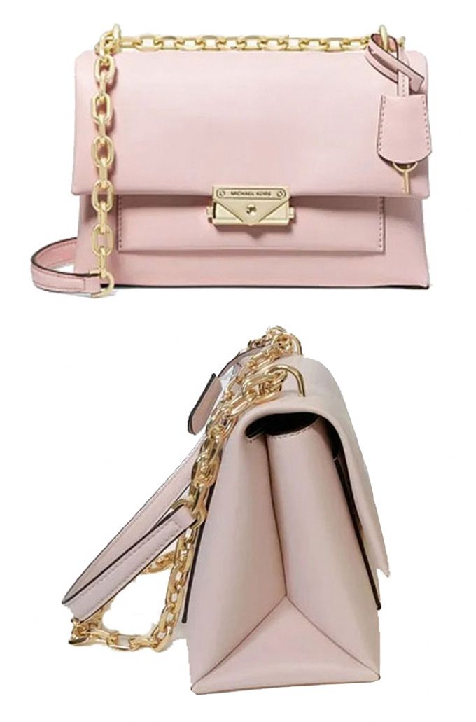 翻蓋皮革肩斜兩用鍊包 (粉)