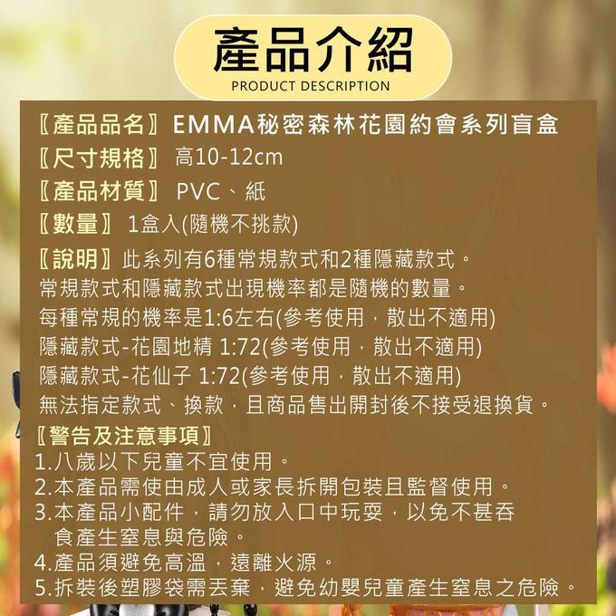 品名:Emma秘境森林系列 花園約會 盒玩 盲盒 盲抽 公仔 玩偶 手辦模型