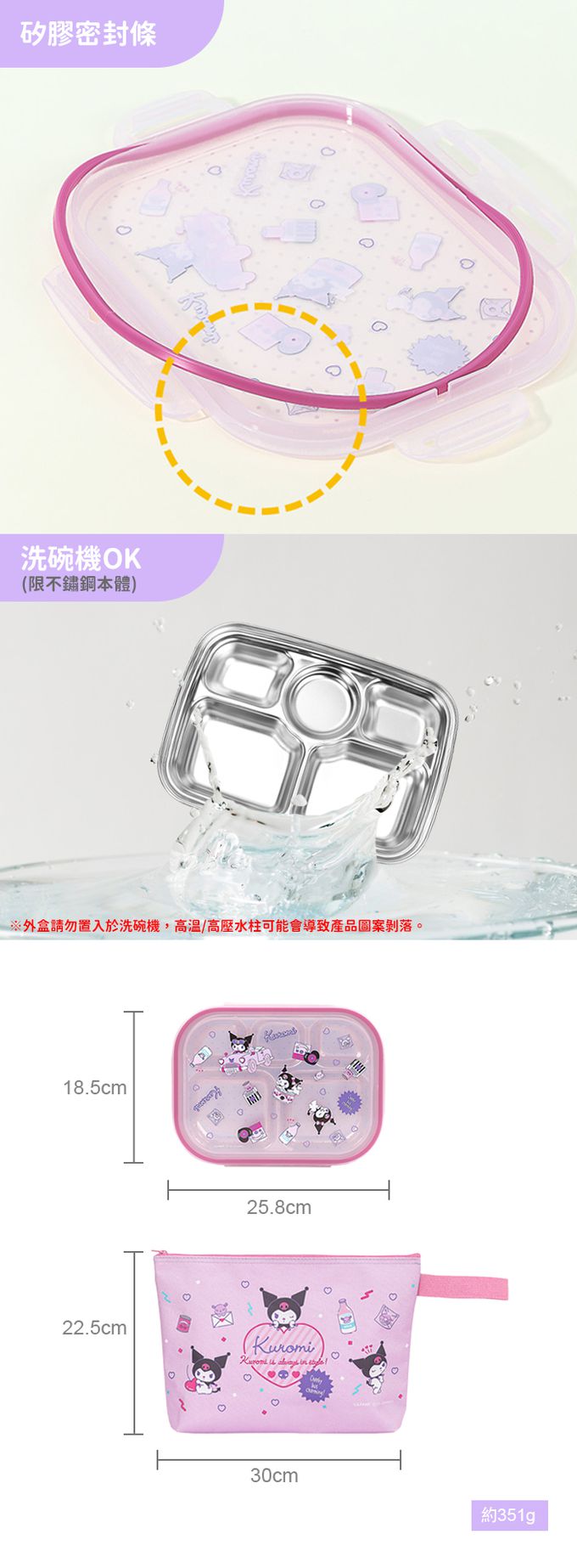 材質:餐盤-304不鏽鋼、上蓋-PP聚丙烯、墊圈-矽膠Silicone、外袋-聚酯纖維