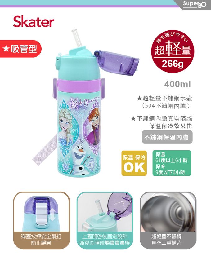 兒童吸管不鏽鋼保溫水壺-冰雪奇緣Heart-400ml