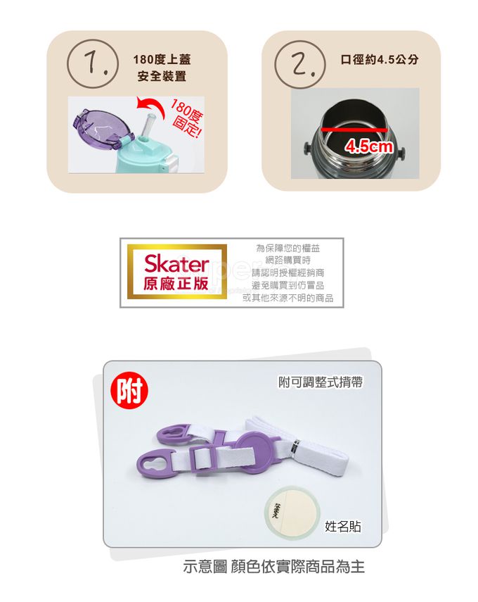 注意事項:1、不可加熱,不可微波! 2、請以海綿清洗,勿用鋼刷或硬質物洗滌,以免刮傷,並自然陰乾。 3、不可使用於洗碗機、烘碗機、消毒鍋,並勿接近火爐,以免褪色,或透溫(失去保溫功能)。 4、雙層真空不鏽鋼容器,皆具有保冷保溫功能,吸管型水壺,切勿注入高溫飲品,因環境溫差壓力可能會導致飲品溢出。 5、為避免燙口,燙傷或其他不當使用等意外,故包裝僅標示 保冷專用。