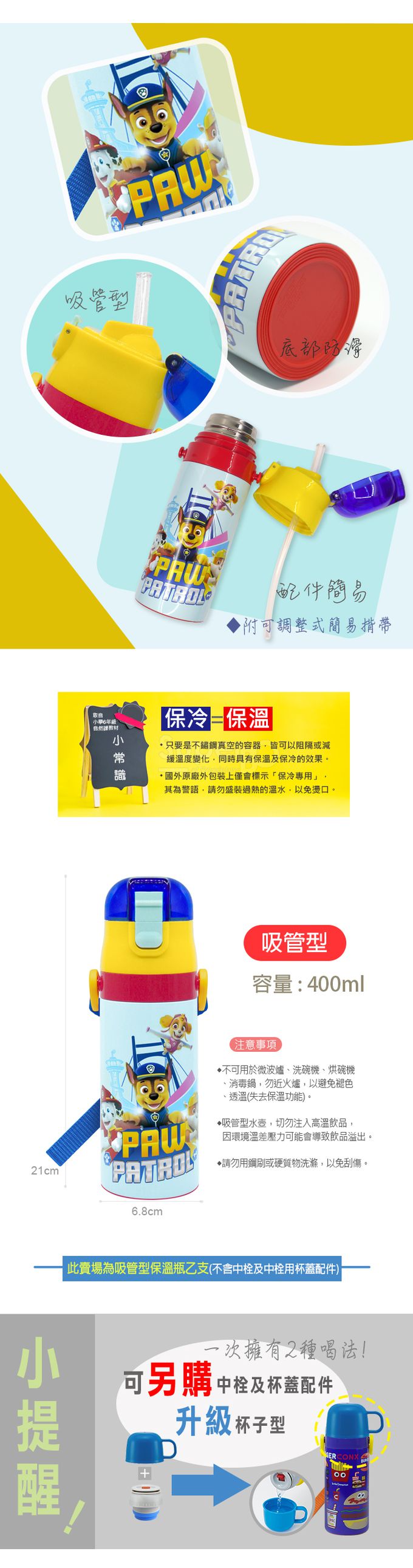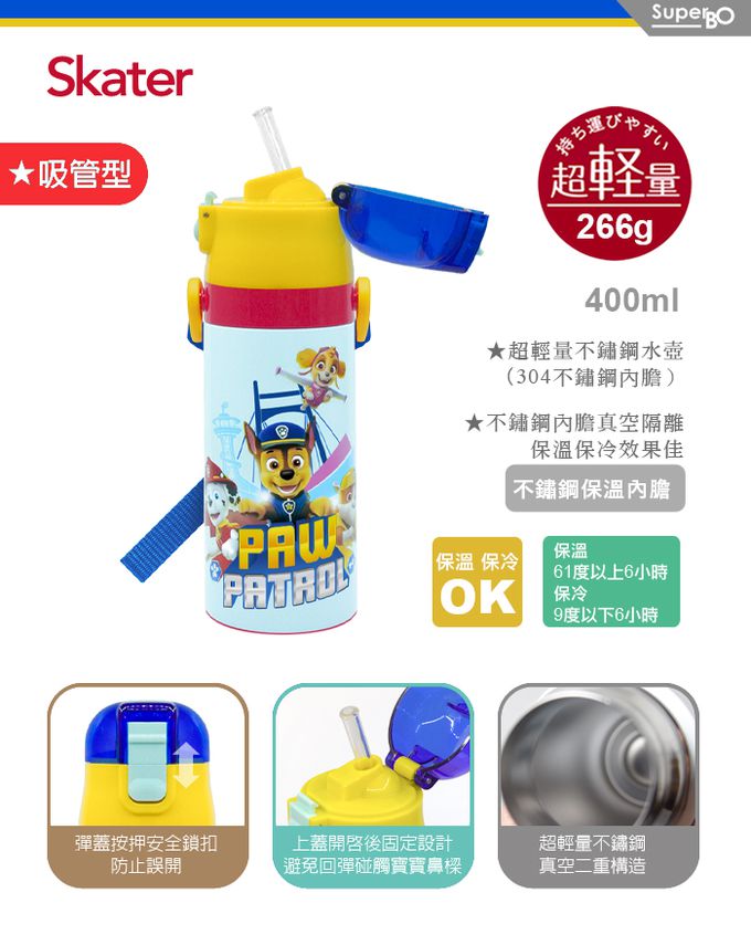 兒童吸管不鏽鋼保溫水壺-汪汪隊-400ml