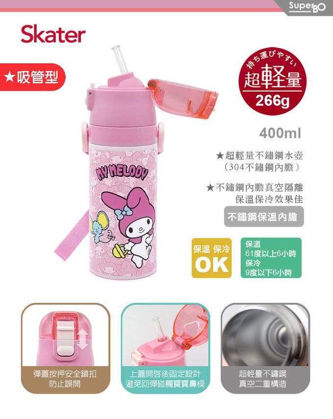 兒童吸管不鏽鋼保溫水壺-美樂蒂與佛蘭多-400ml