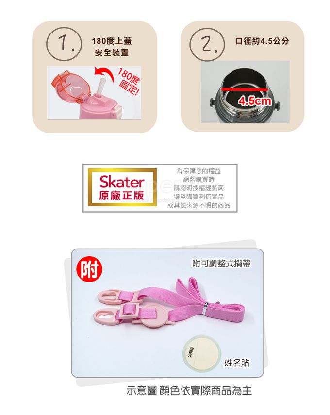 注意事項:1、不可加熱,不可微波! 2、請以海綿清洗,勿用鋼刷或硬質物洗滌,以免刮傷,並自然陰乾。 3、不可使用於洗碗機、烘碗機、消毒鍋,並勿接近火爐,以免褪色,或透溫(失去保溫功能)。 4、雙層真空不鏽鋼容器,皆具有保冷保溫功能,吸管型水壺,切勿注入高溫飲品,因環境溫差壓力可能會導致飲品溢出。 5、為避免燙口,燙傷或其他不當使用等意外,故包裝僅標示 保冷專用。