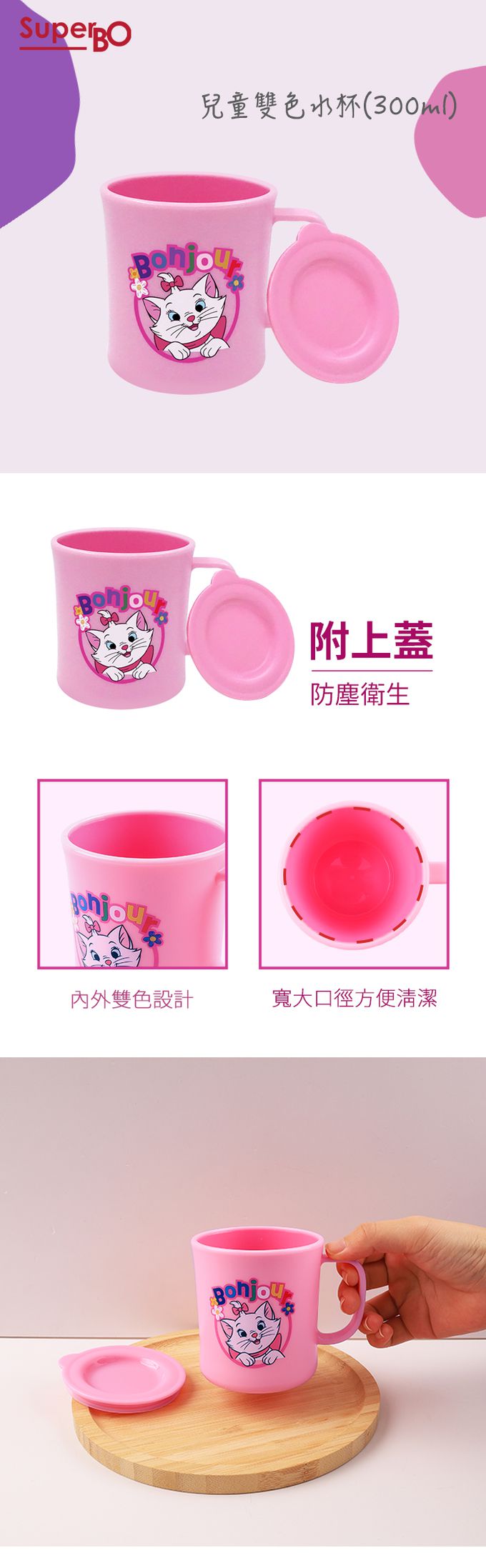注意事項:●請勿高溫消毒,勿使用洗碗機及紫外線消毒鍋,可能會導致產品變形或圖案剝落。 ●使用微波爐時請確保取下上蓋,避免熱氣壓力造成開蓋困難或危險 ●本品無防漏,請勿橫置或劇烈搖晃避免飲品漏出。 ●請以柔軟海綿搭配中性清潔劑及清水洗淨。 ●請在成人看護下使用。