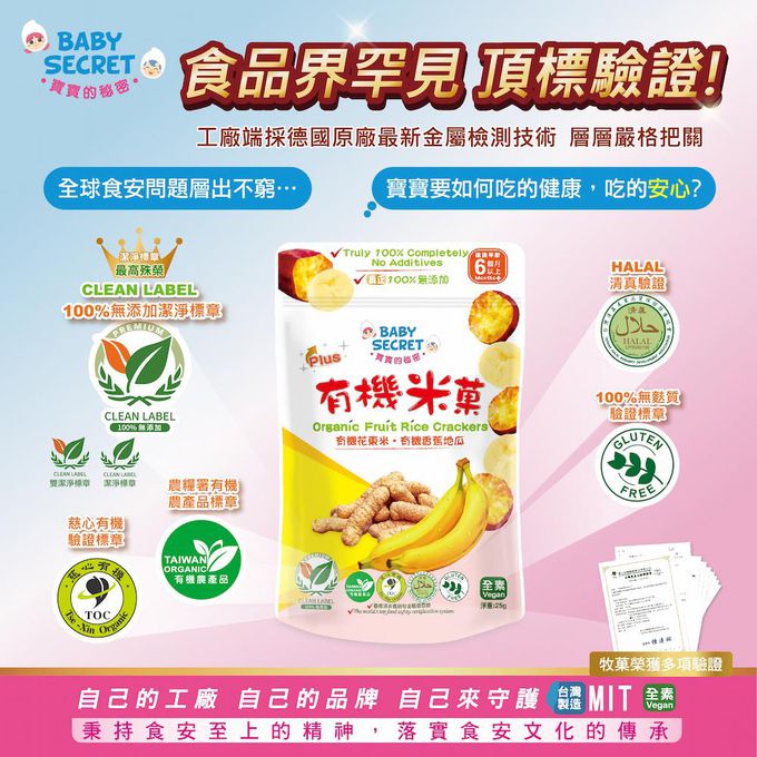 成分:芭樂:有機白米(台灣)、有機芭樂(台灣)丶有機地瓜(台灣) 香蕉:有機白米(台灣)、有機地瓜(台灣)丶有機香蕉(台灣) 蘋果:有機白米(台灣)、有機地瓜(台灣)丶有機蘋果(美國/紐西蘭)