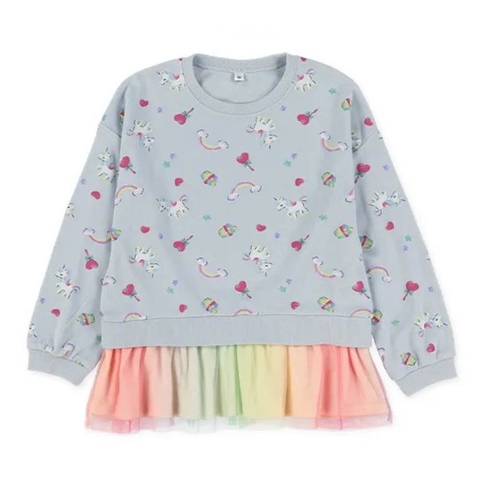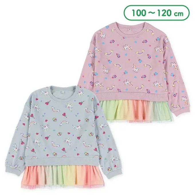 ![日本西松屋 - 華夫格異素材絲帶長袖上衣-白x藍紫]()