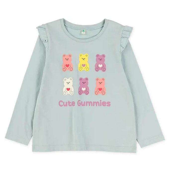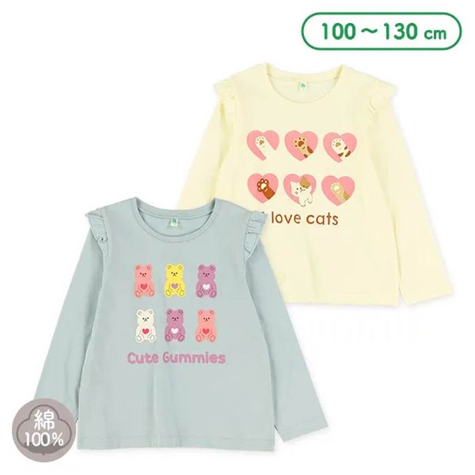 ![日本西松屋 - 華夫格異素材絲帶長袖上衣-白x藍紫]()