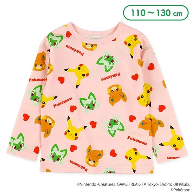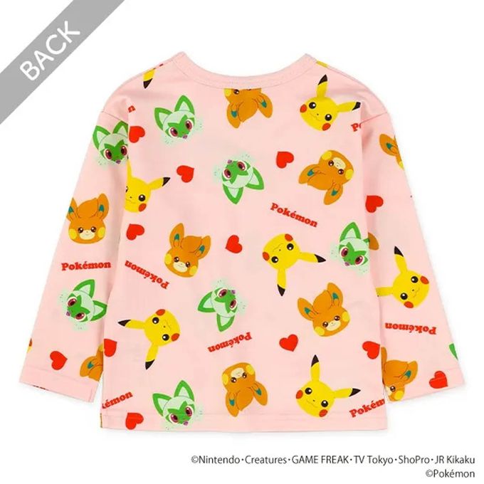 日本西松屋 - 限量聯名 印花長袖上衣-卡通人物寶可夢-粉紅