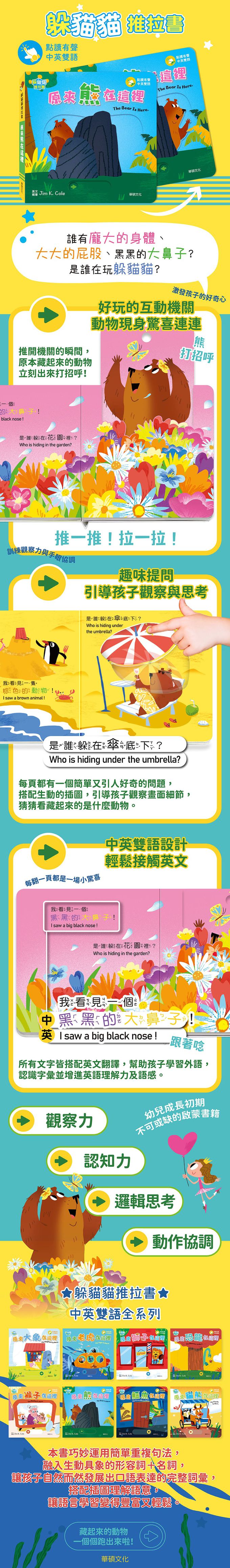 品名:原來熊在這裡 The bear is here︱躲貓貓推拉書系列