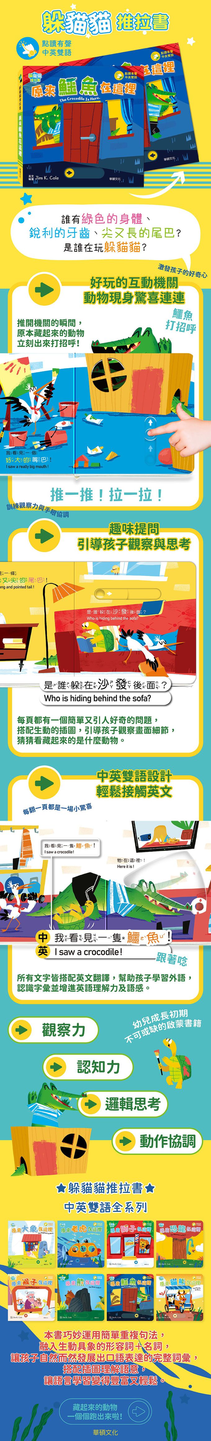 品名:原來鱷魚在這裡 The crocodile is here︱躲貓貓推拉書系列