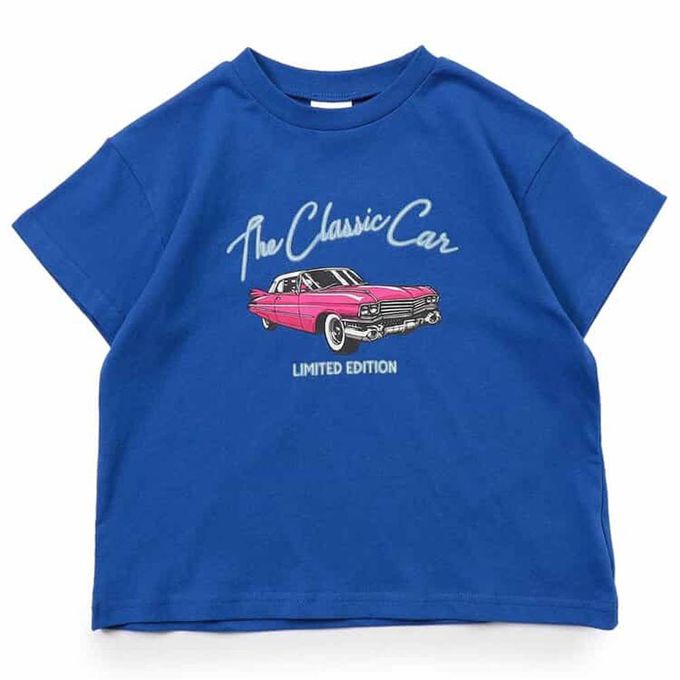 日本 BREEZE - 100%棉 復古系印花短袖上衣-帥氣跑車-寶藍