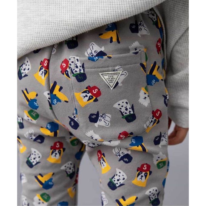 日本 BREEZE - DAISUKI 百搭鬆緊彈性九分褲-帽子狗狗-淺灰
