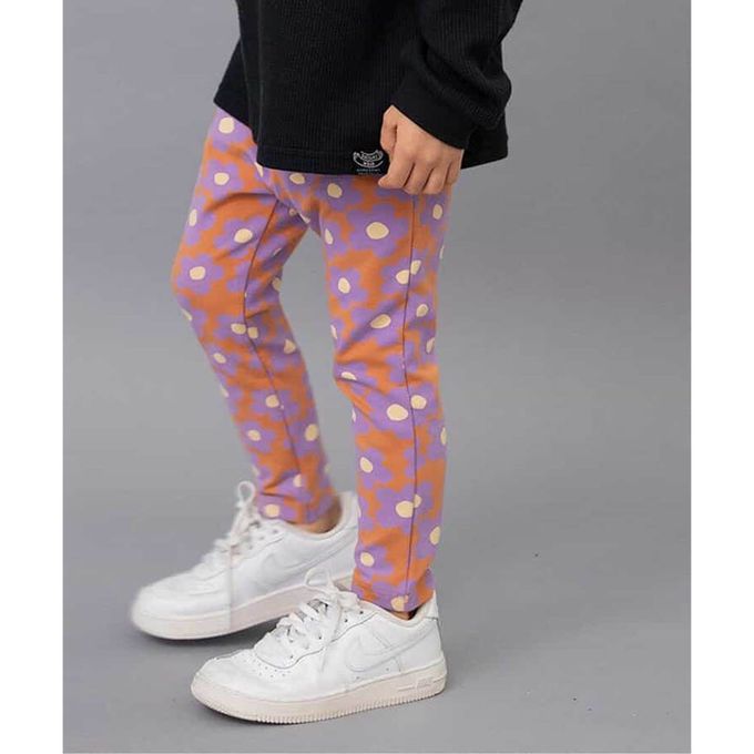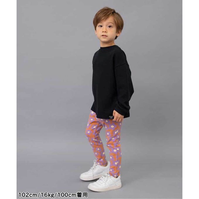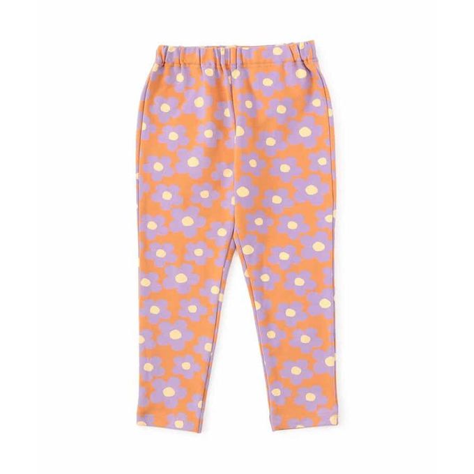 日本 BREEZE - DAISUKI 百搭鬆緊彈性九分褲-花朵-橘