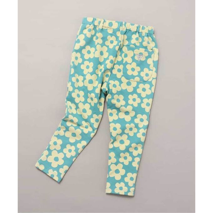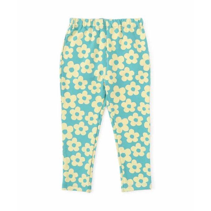 日本 BREEZE - DAISUKI 百搭鬆緊彈性九分褲-花朵-寶石綠