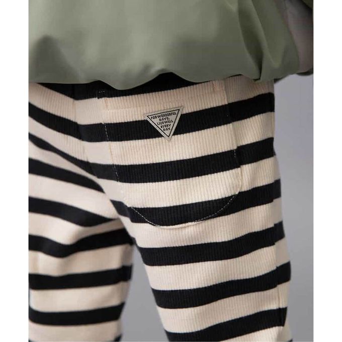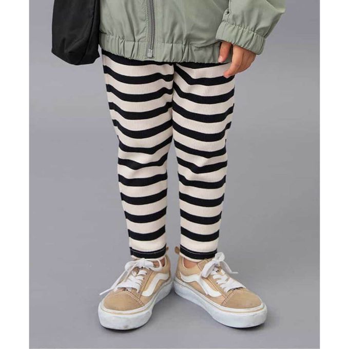 日本 BREEZE - DAISUKI 百搭鬆緊彈性九分褲-條紋-黑X白