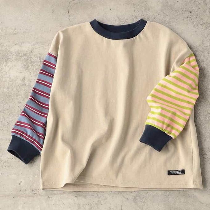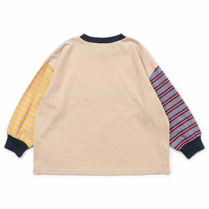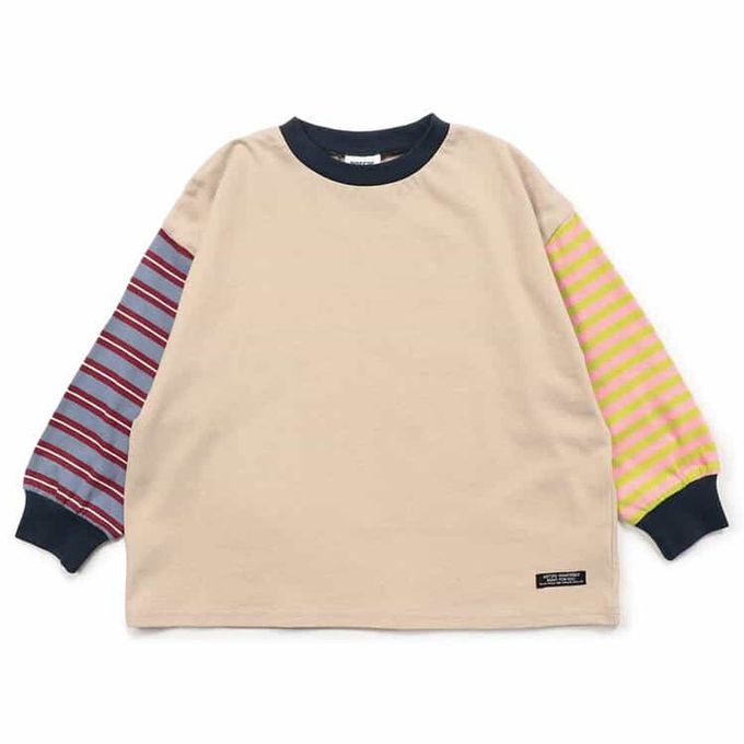 日本 BREEZE - 100%棉 定番款搭縮口長袖上衣-素面撞色-卡其X藍X粉紅