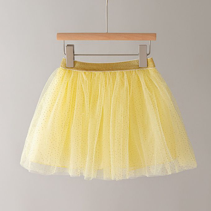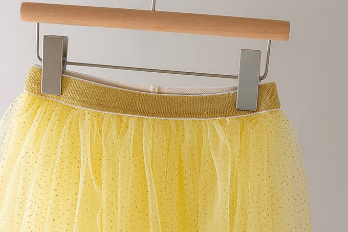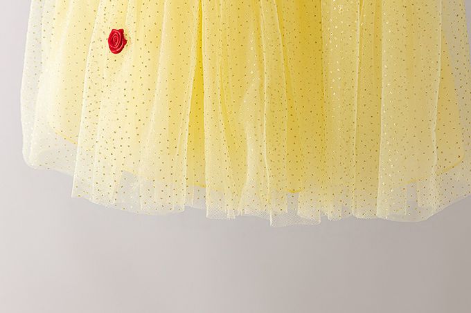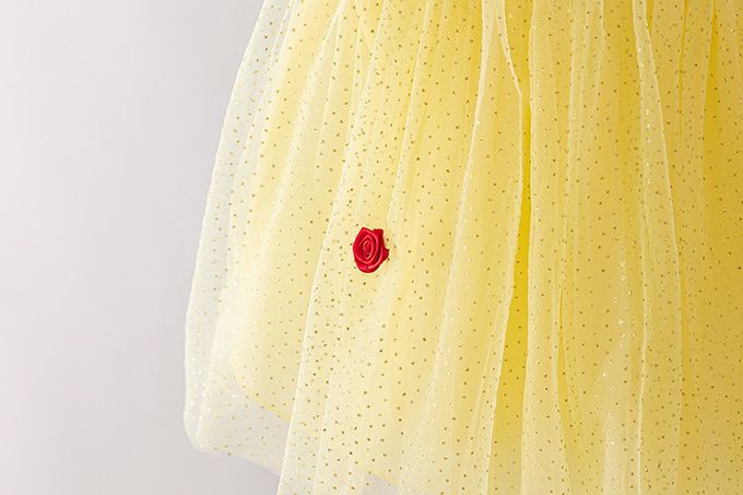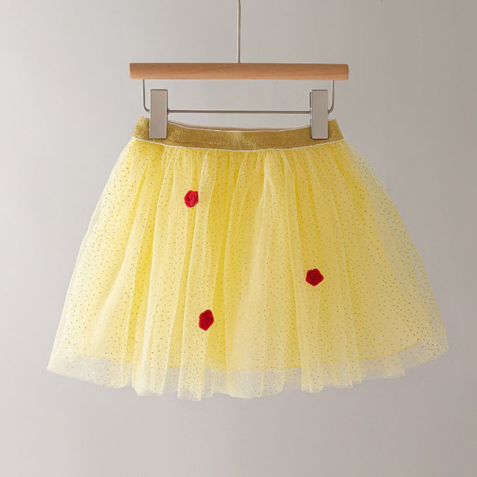 腰鬆緊網紗短裙-紅色玫瑰-公主黃