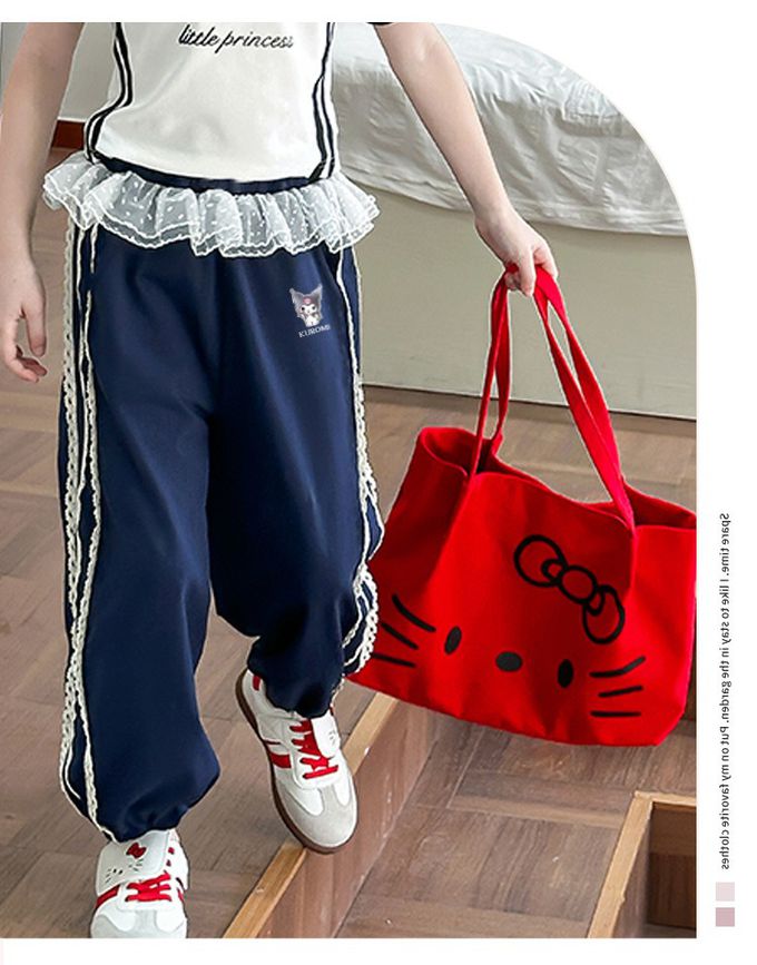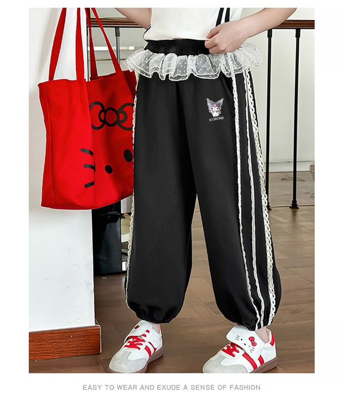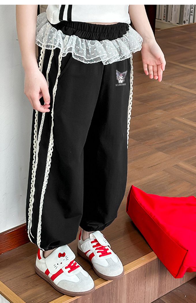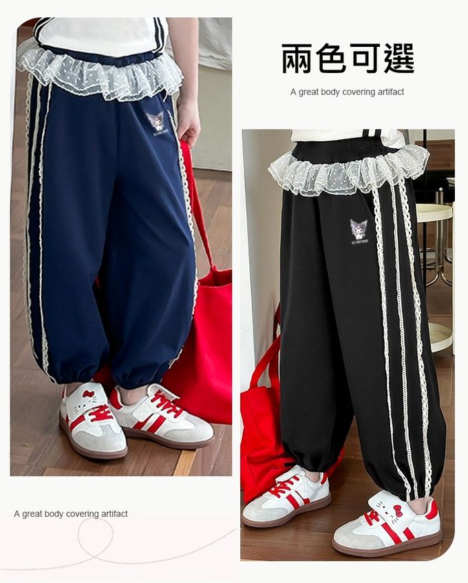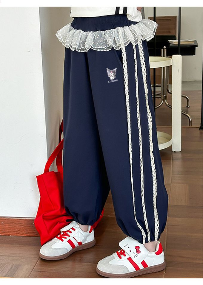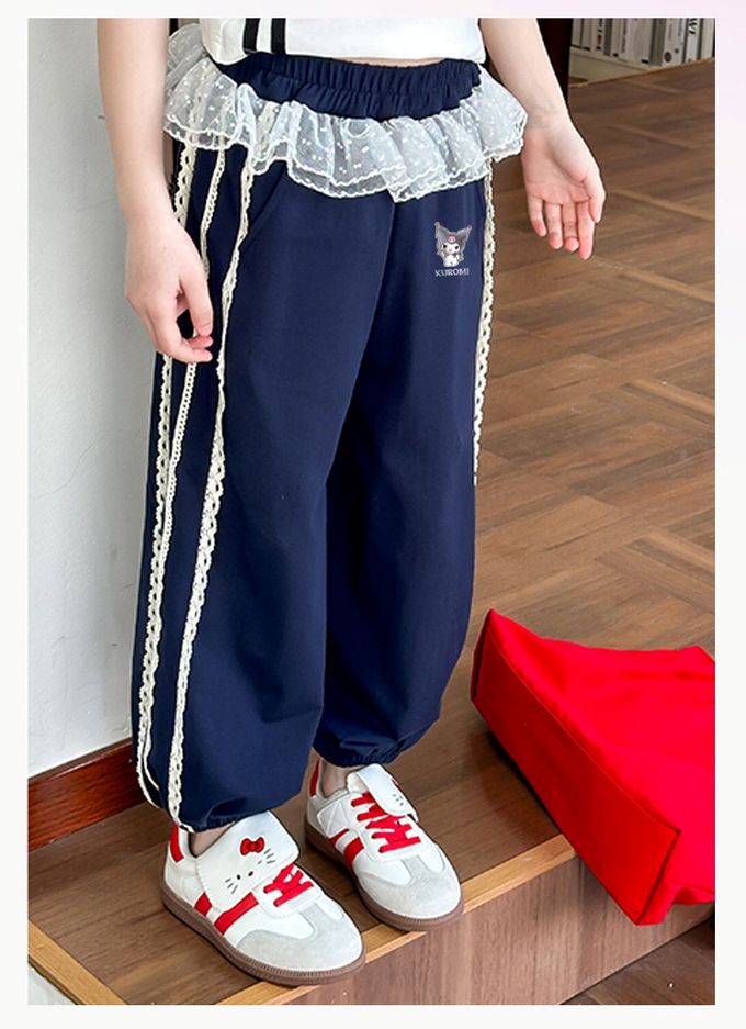 雙層蕾絲花邊休閒長褲-卡通人物酷洛米-藏青