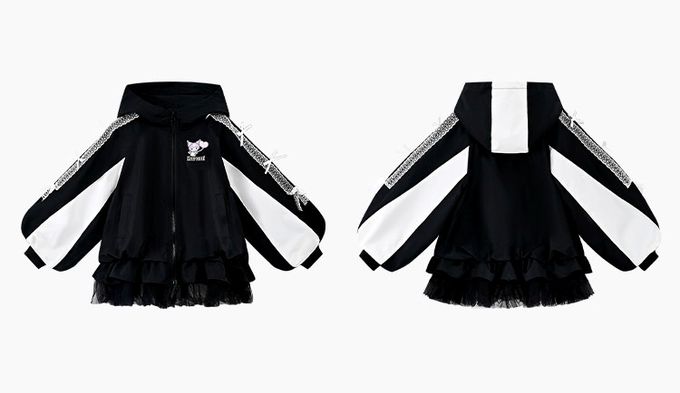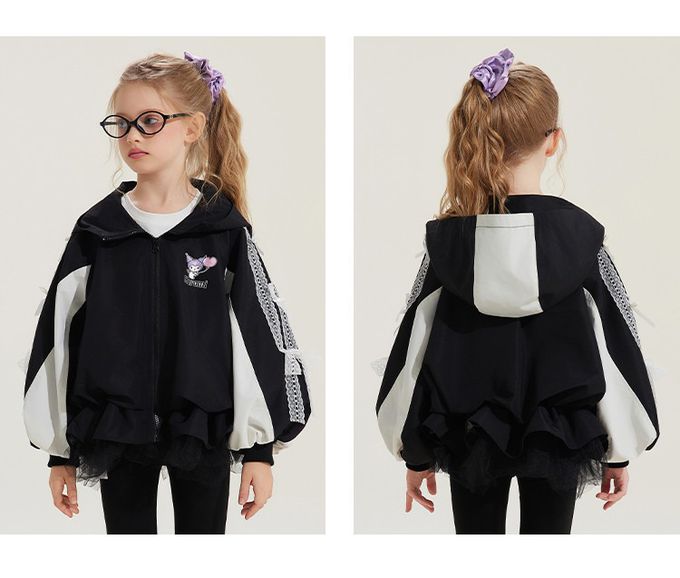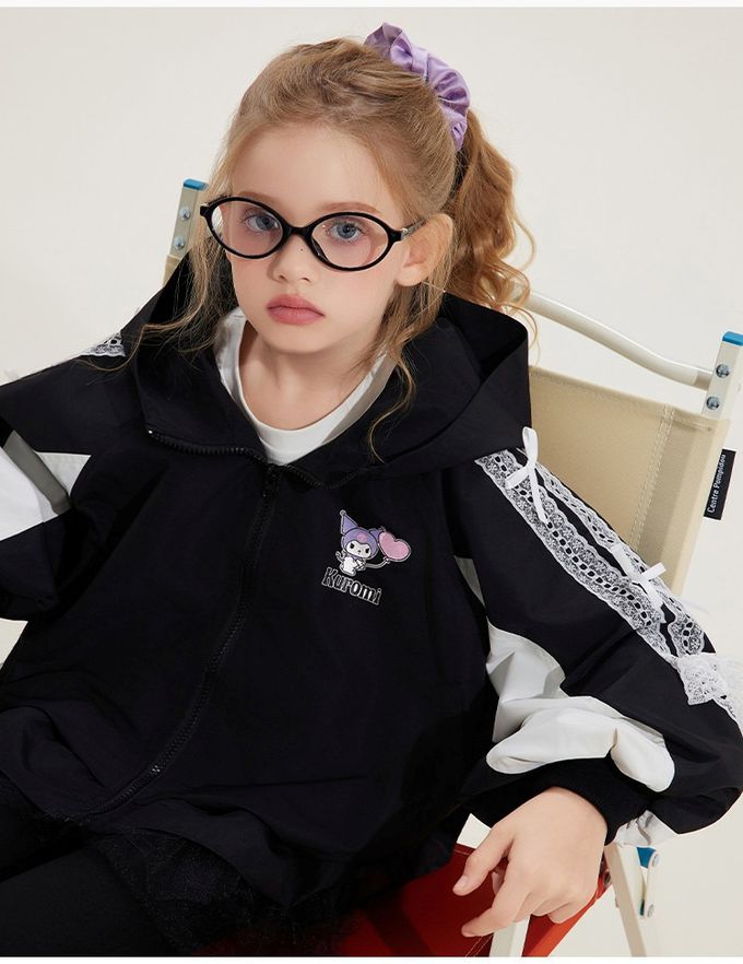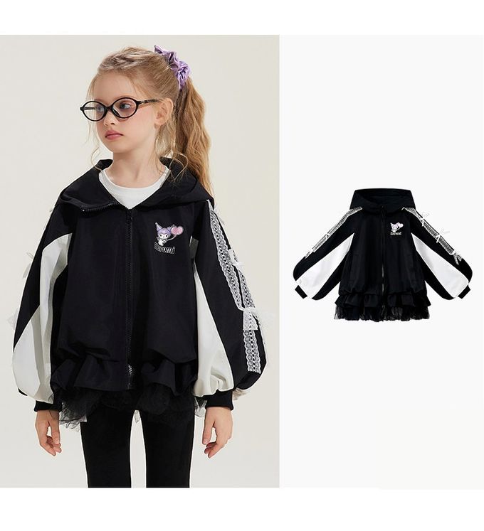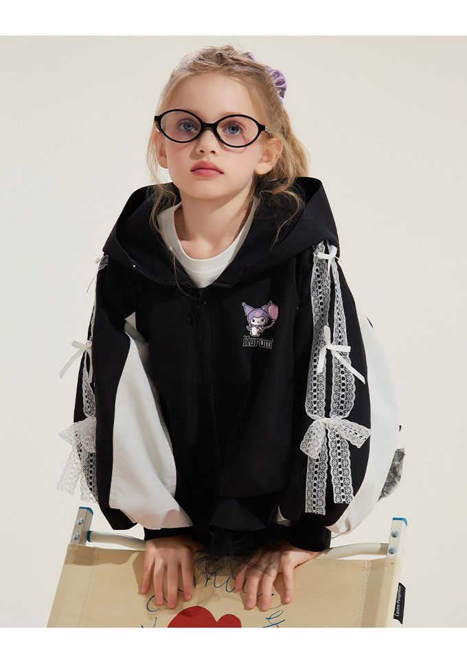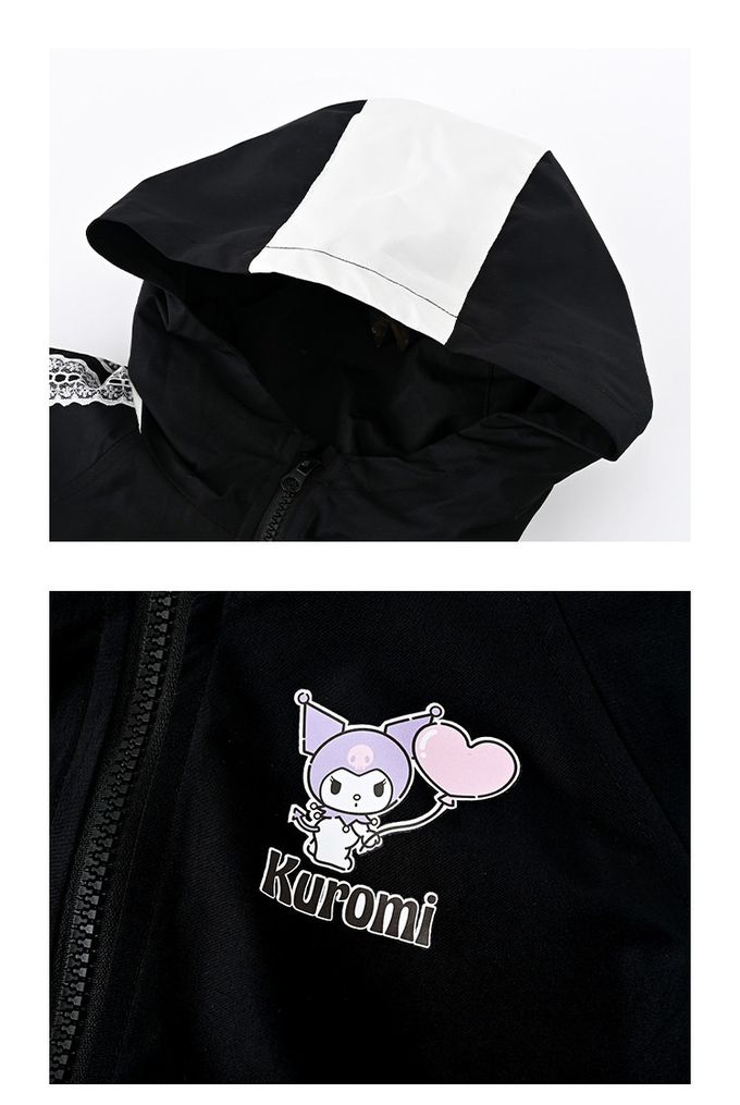人氣卡通 - 甜酷蕾絲網紗拼接連帽外套-卡通人物酷洛米-黑色