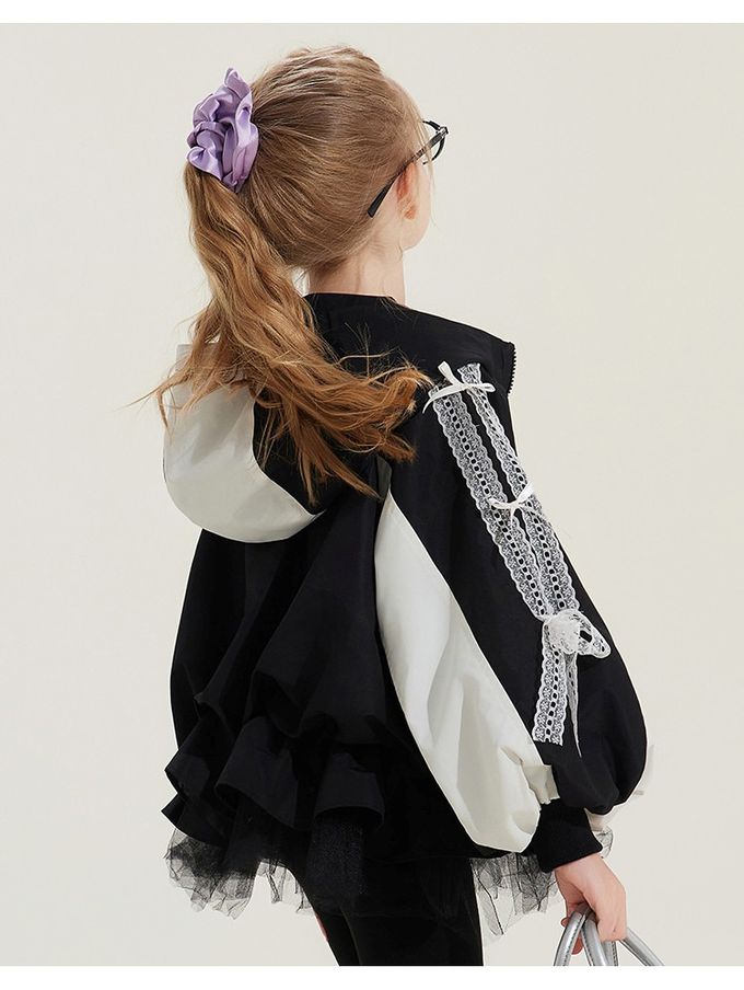 • 品名:甜酷蕾絲網紗拼接連帽外套