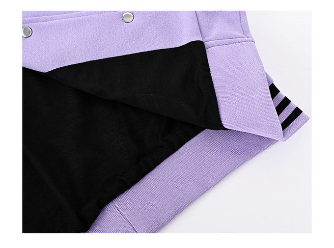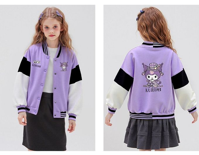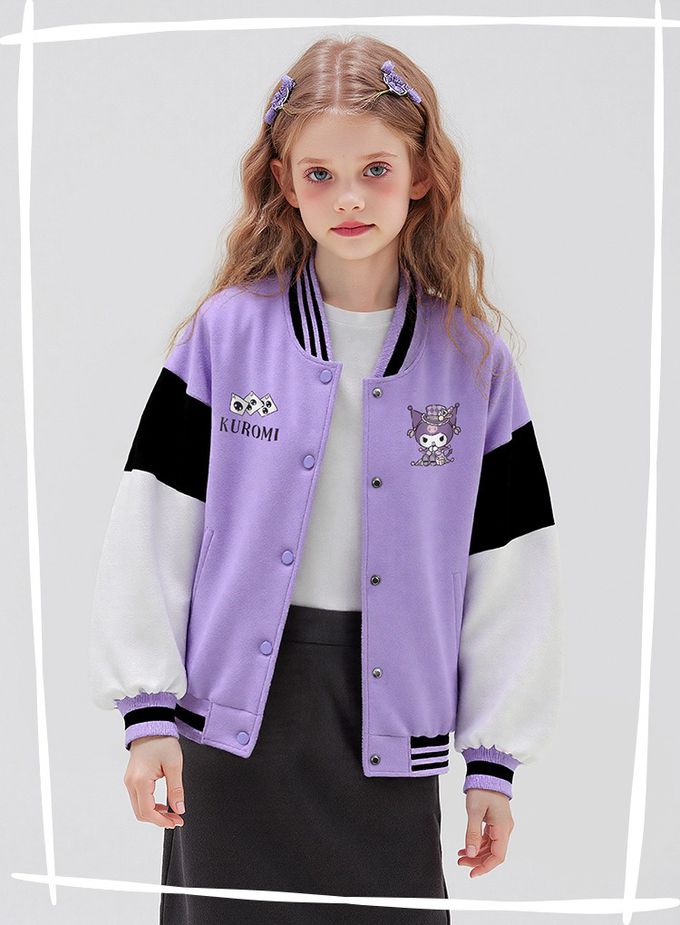 撞色拼接棒球外套-卡通人物酷洛米-紫色