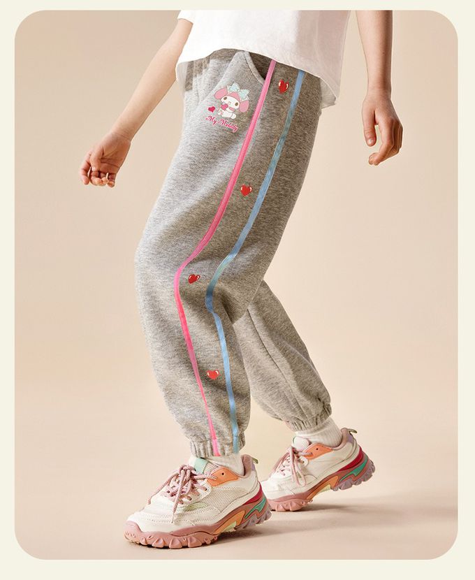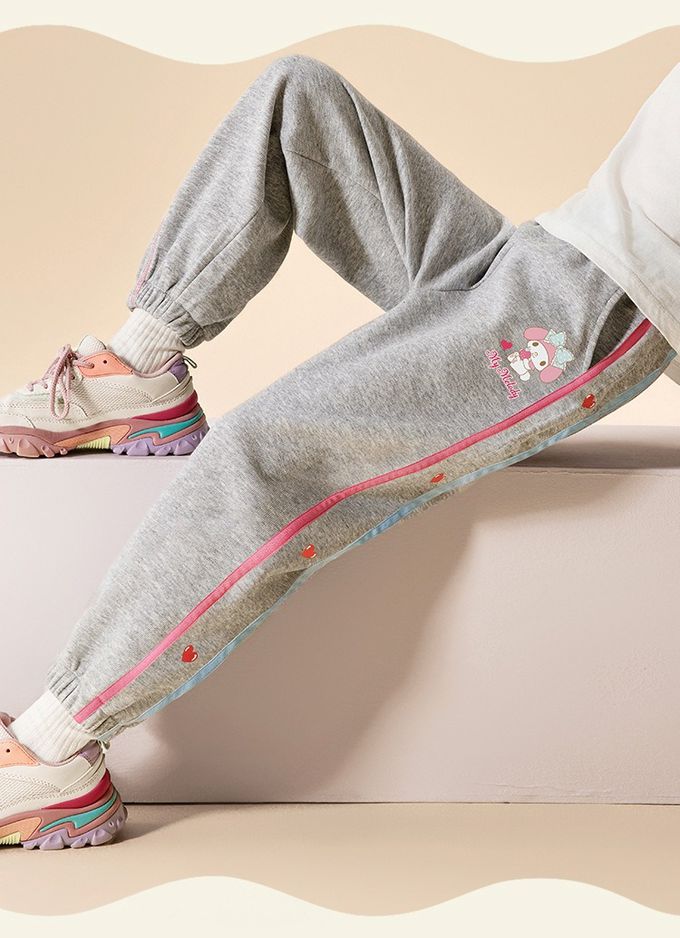 腰鬆緊撞色織帶百搭休閒長褲-卡通人物美樂蒂-灰色