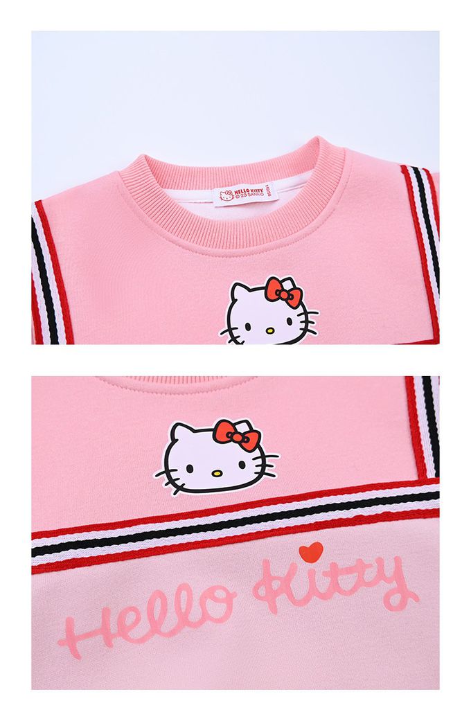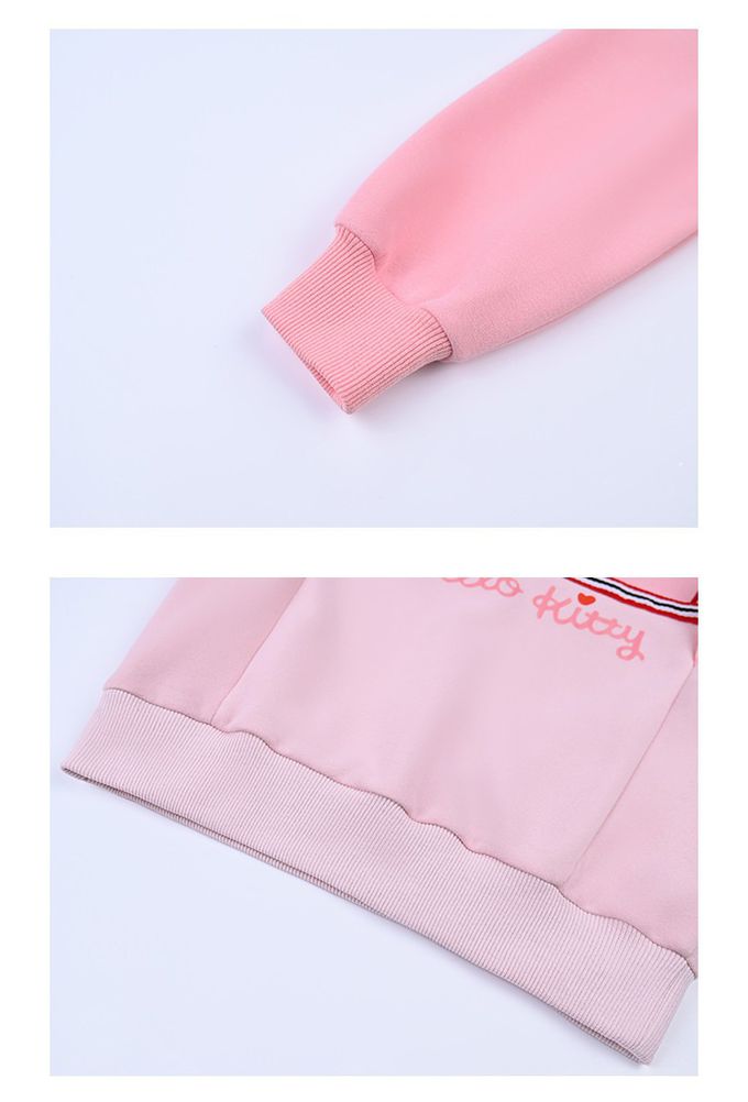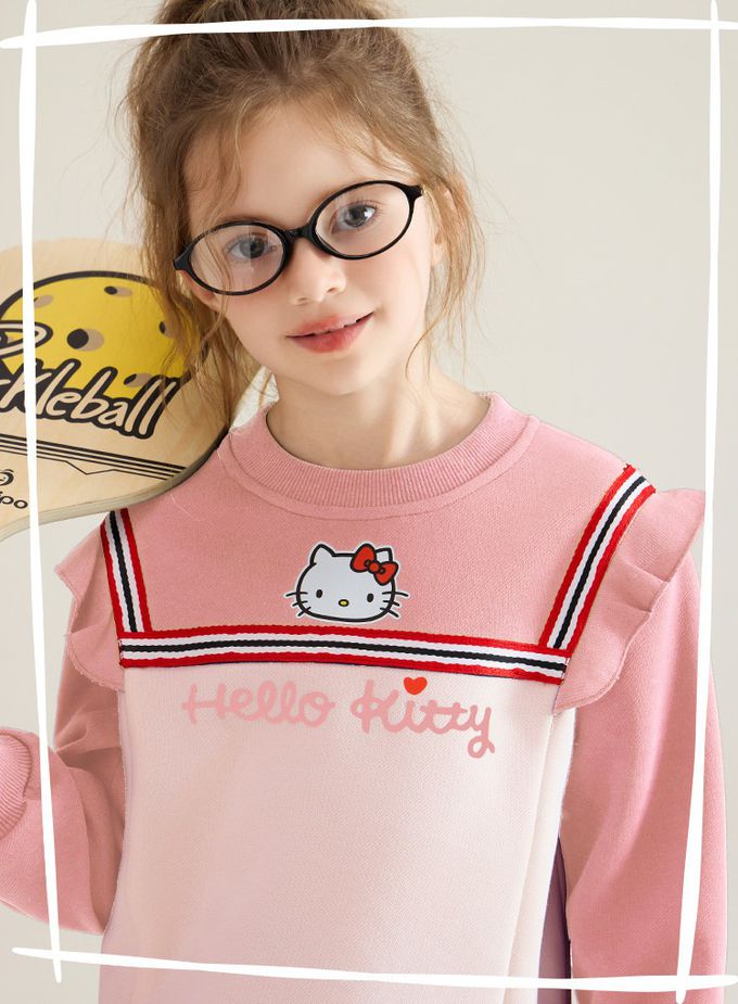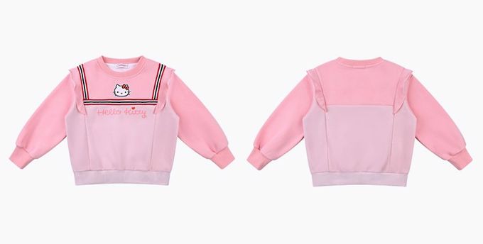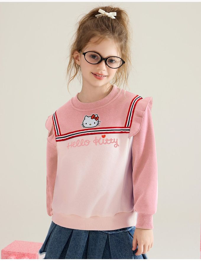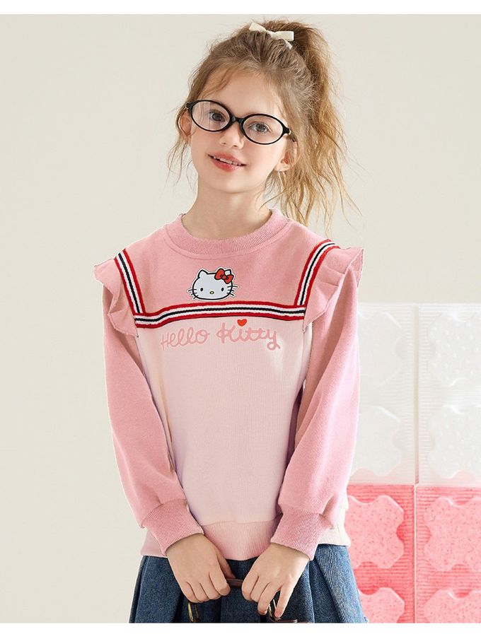 荷葉邊拼接長袖上衣/大學T-卡通人物Hello Kitty-粉色