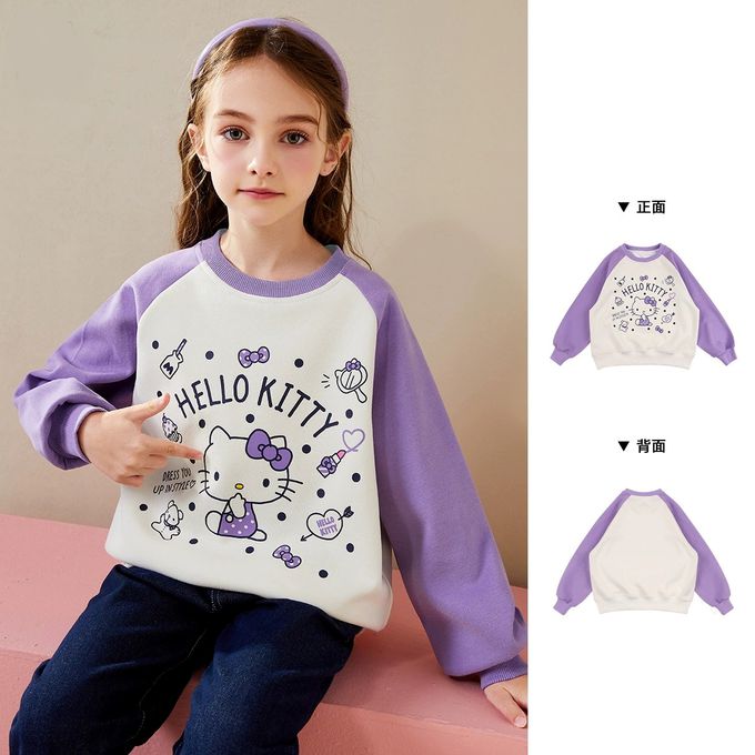 人氣卡通 - 百搭圓領長袖上衣/大學T-卡通人物Hello Kitty-紫色