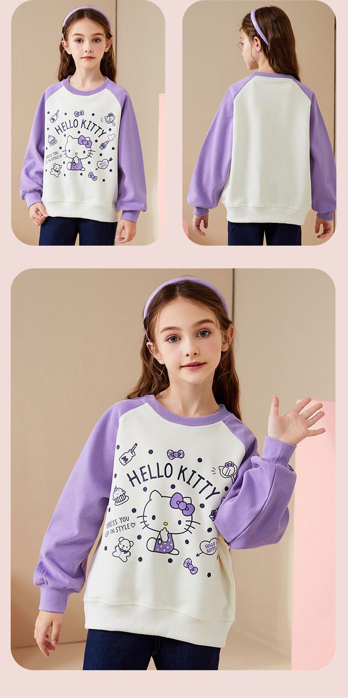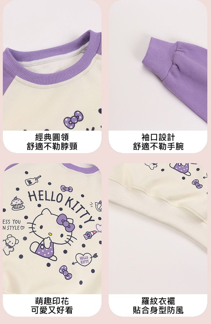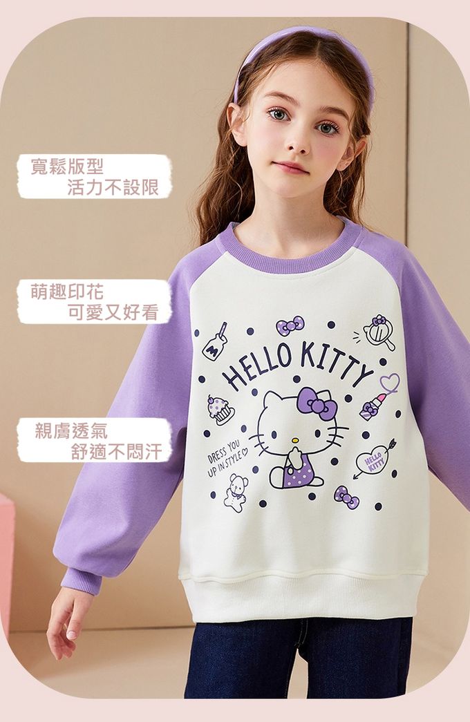 百搭圓領長袖上衣/大學T-卡通人物Hello Kitty-紫色