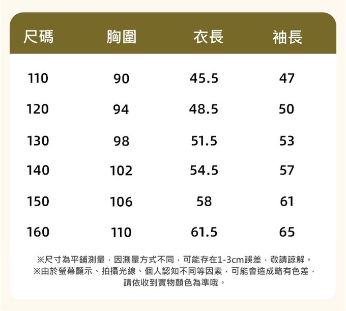 110cm、120cm、130cm、140cm、150cm、160cm