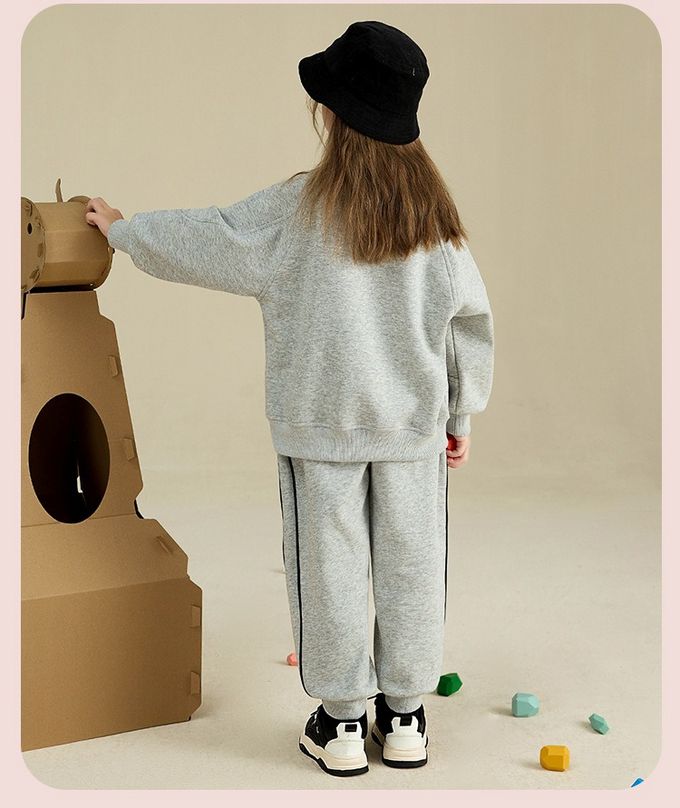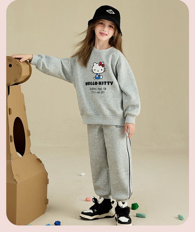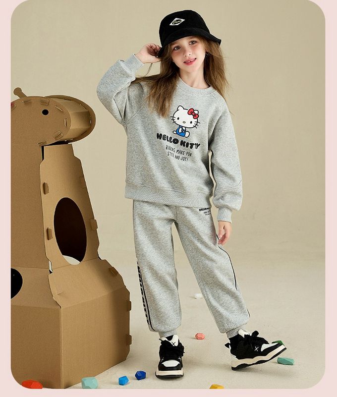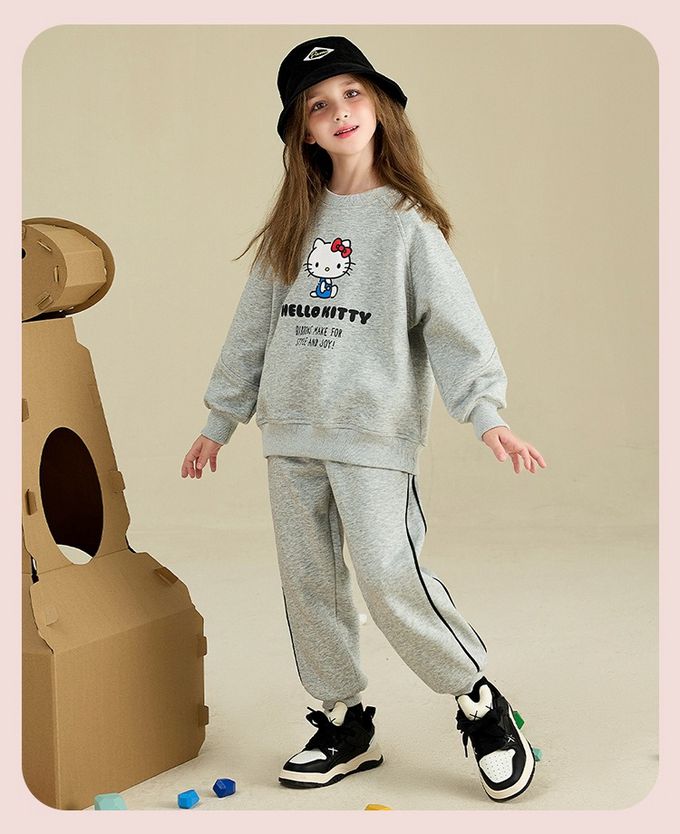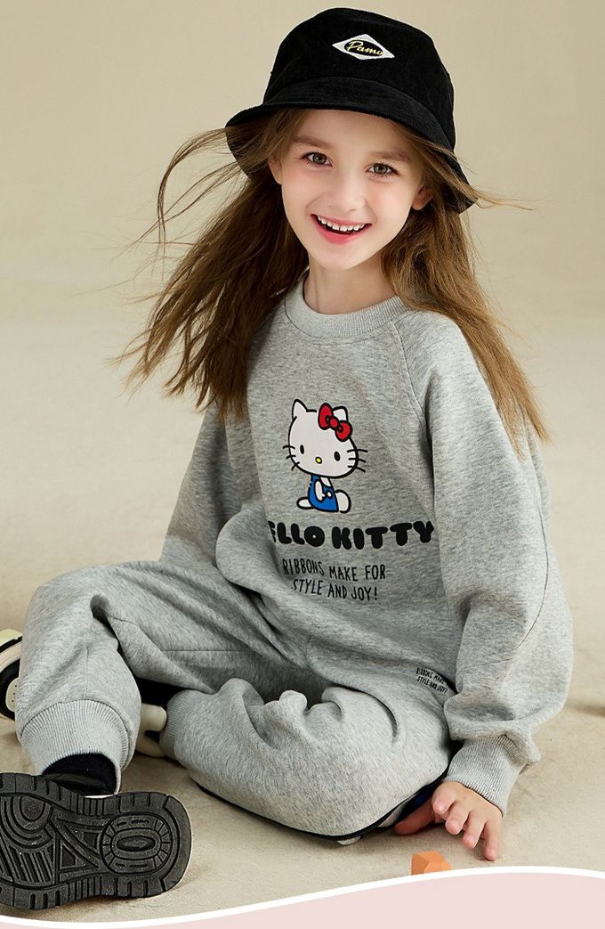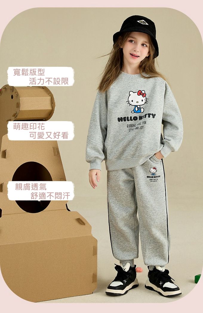 運動休閒長袖上衣+長褲套裝-卡通人物Hello Kitty-灰色