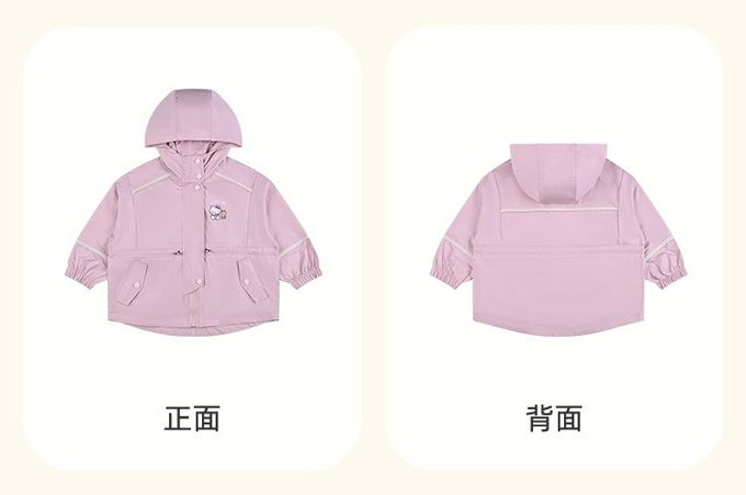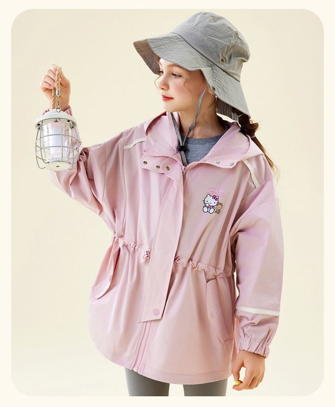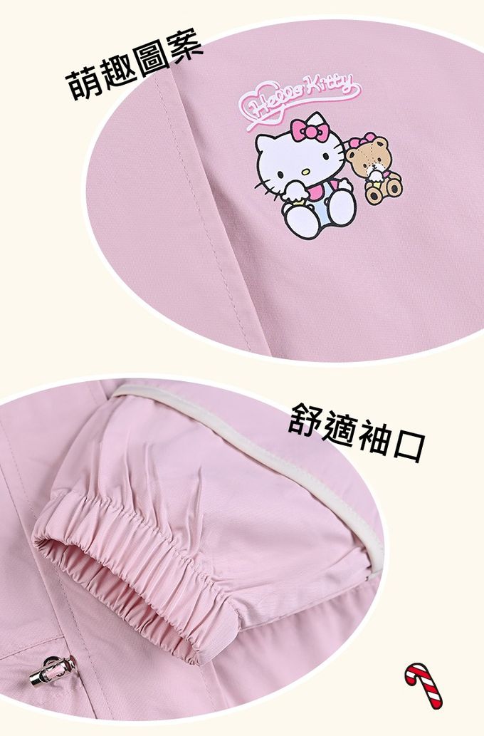 中長版連帽風衣外套-卡通人物Hello Kitty-粉色