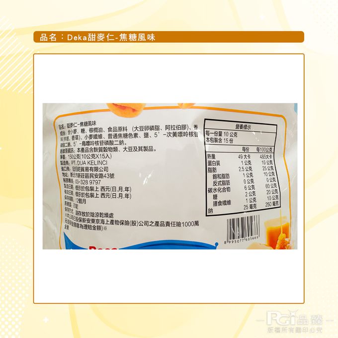過敏原:本產品含麩質穀物類、大豆及其製品。