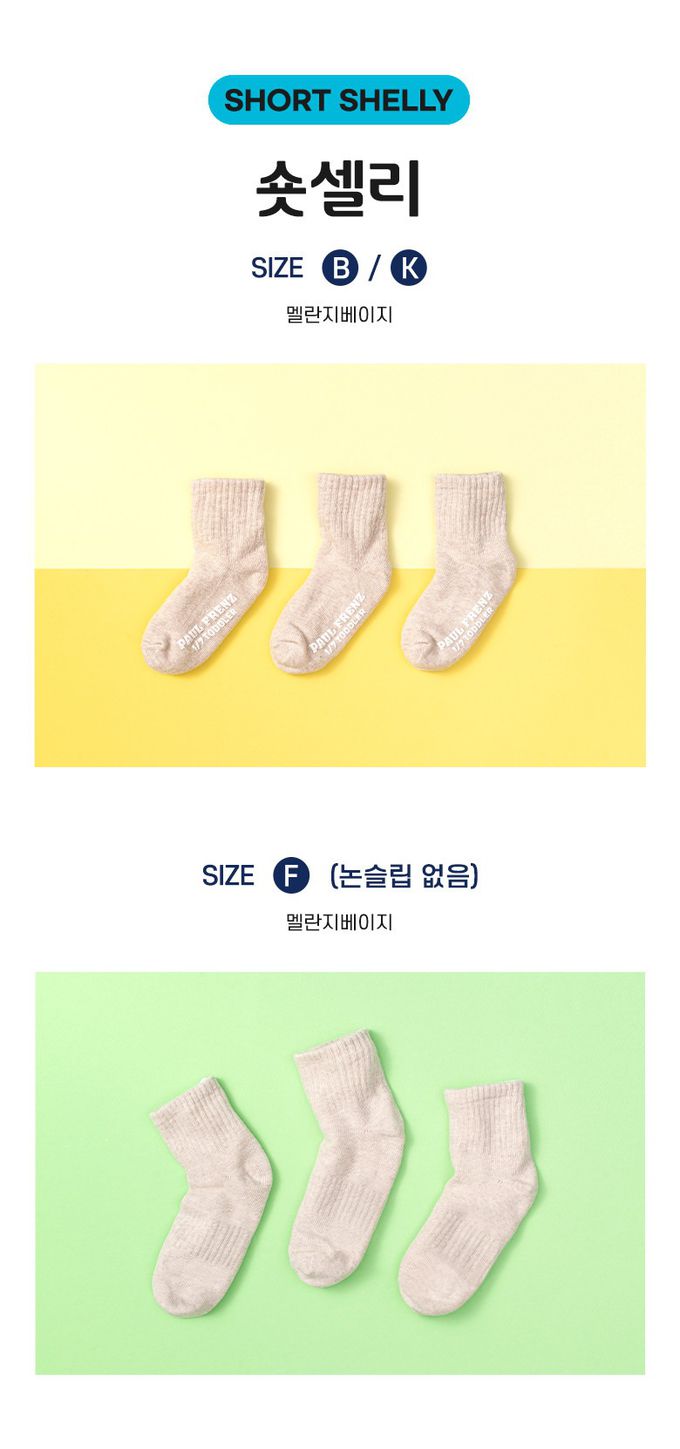 韓國 PAUL FRENZ - (3入組)韓製彈力中短筒襪-SHORT - SHELLY-燕麥