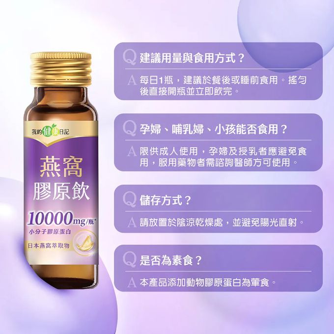 使用方式:建議用量: 每日一瓶,可餐後或睡前飲用,吸收最佳。