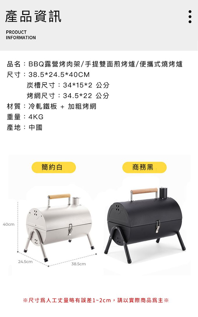 品名:BBQ露營烤肉架/手提雙面煎烤爐/便攜式燒烤爐