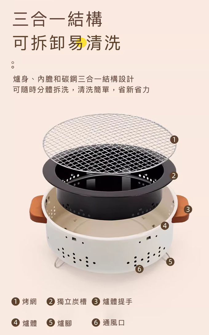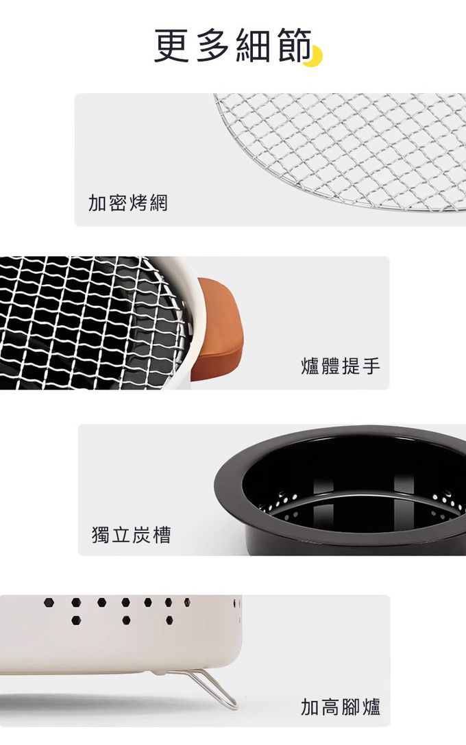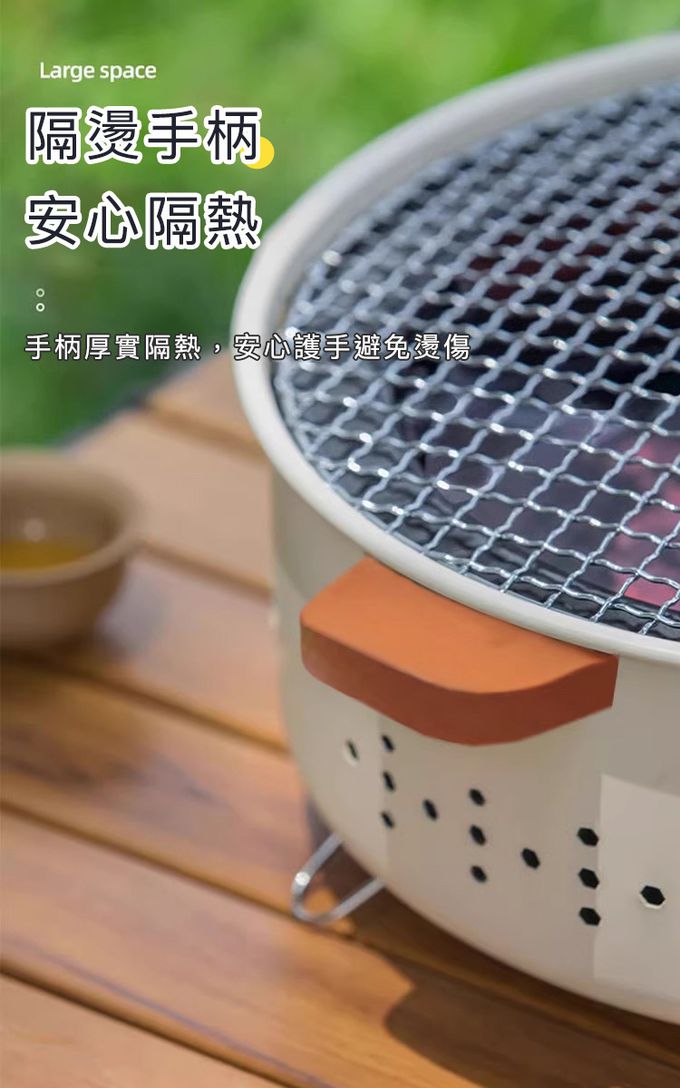 材質:本體/鐵噴塑,炭槽/鐵噴塑,烤網/鐵鍍鎘