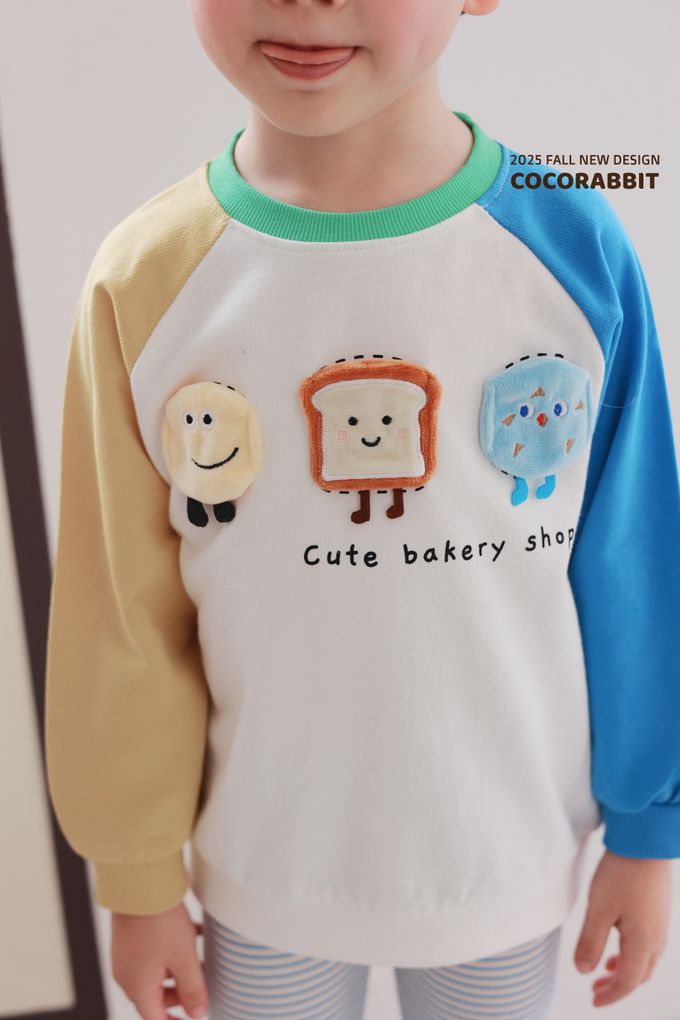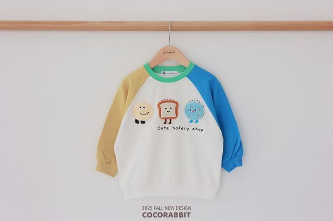 韓國南大門童裝 - Coco rabbit 吐司餅乾裝飾長袖大學T-芥黃X藍