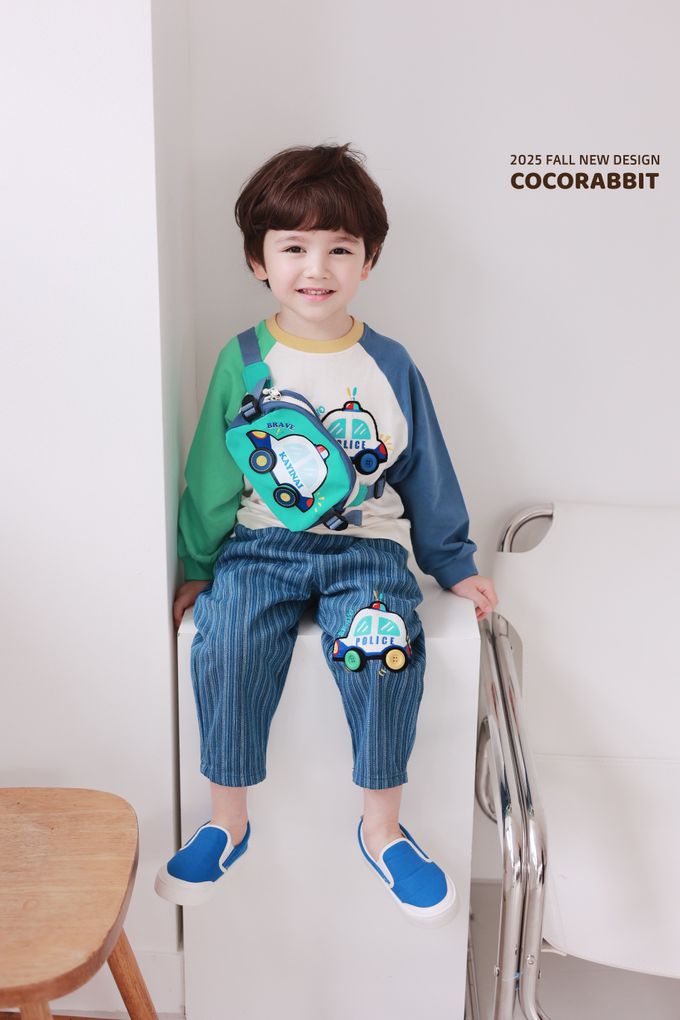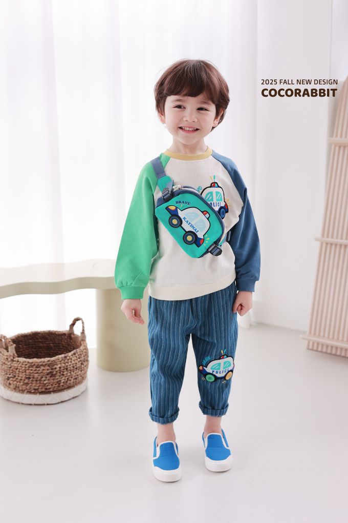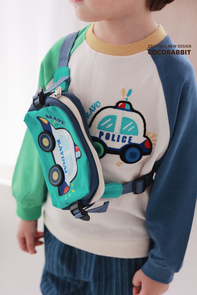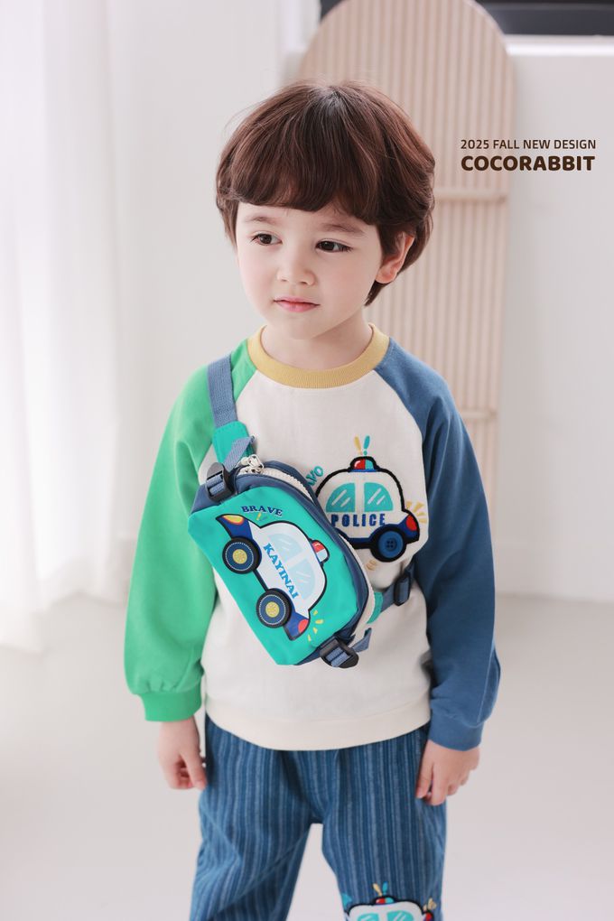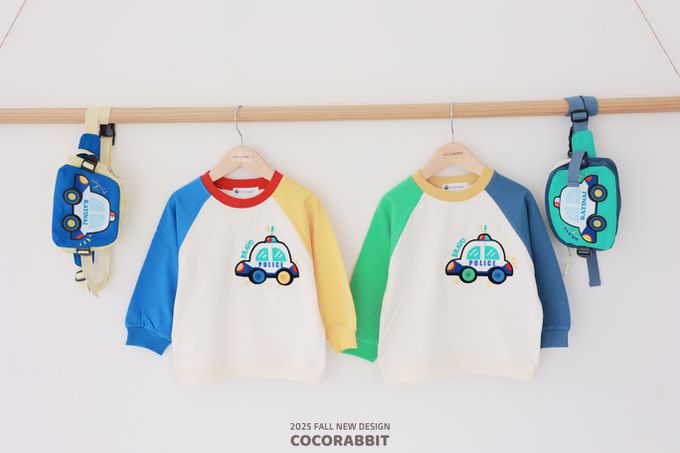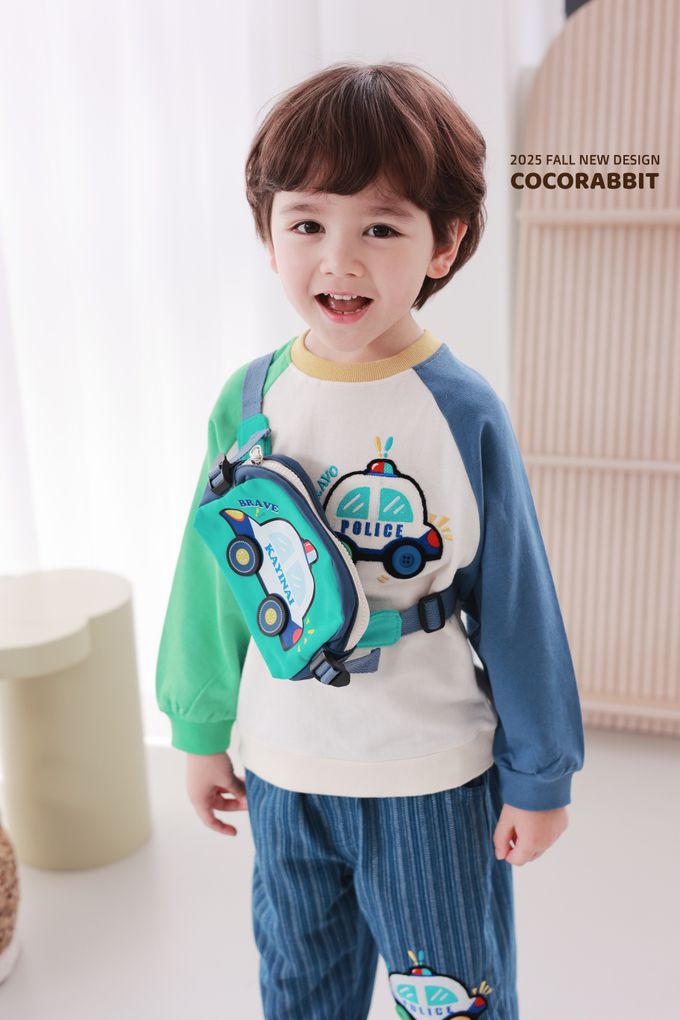 韓國南大門童裝 - Coco rabbit (附包包)警察車車雙色長袖大學T-綠X藍