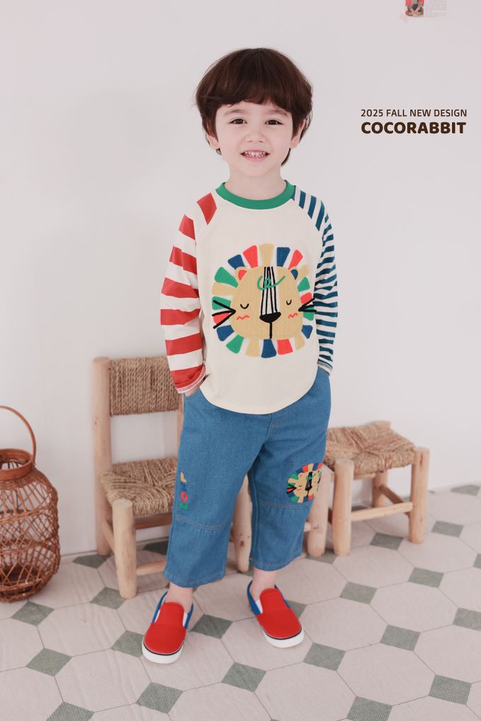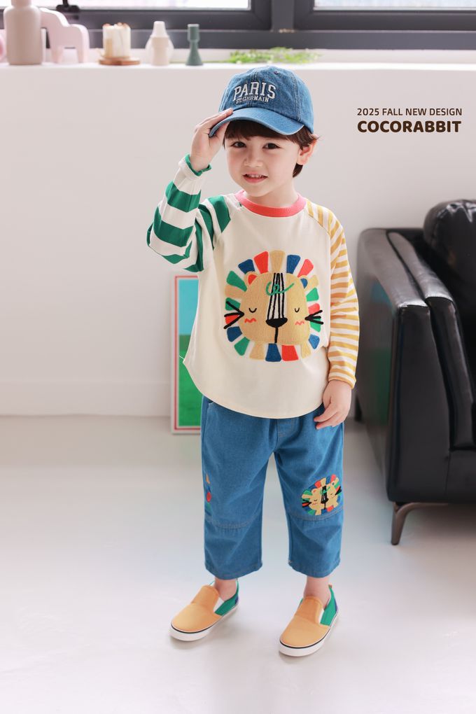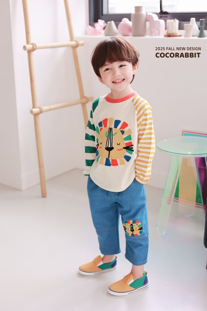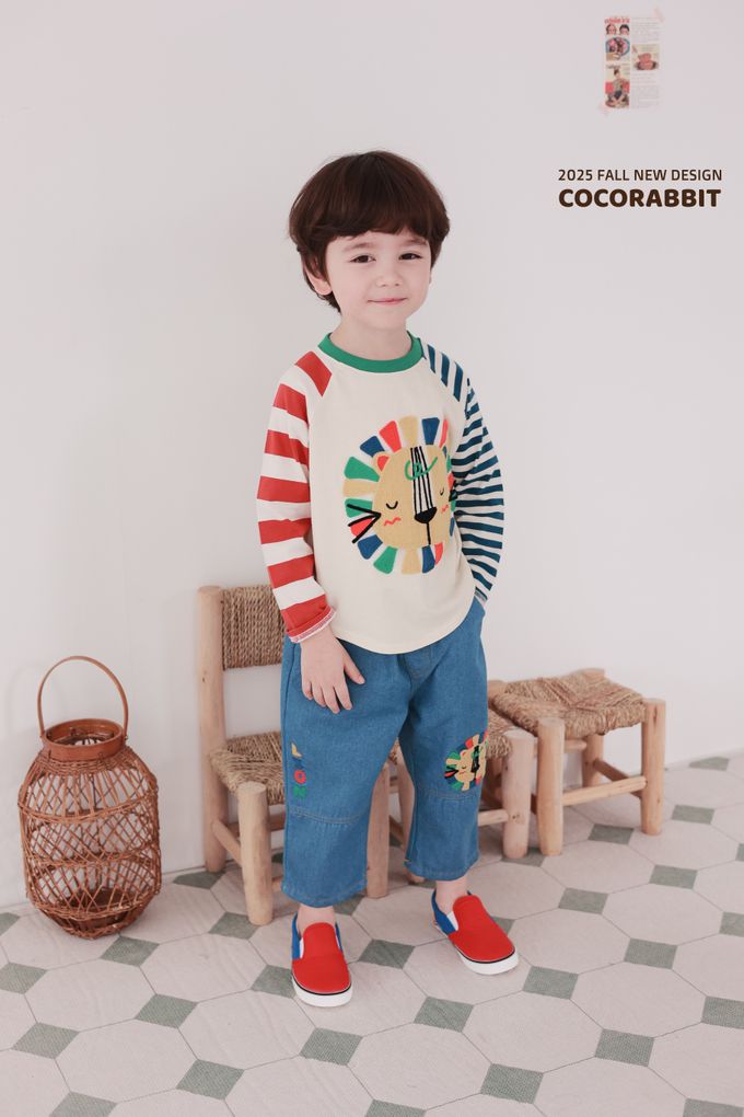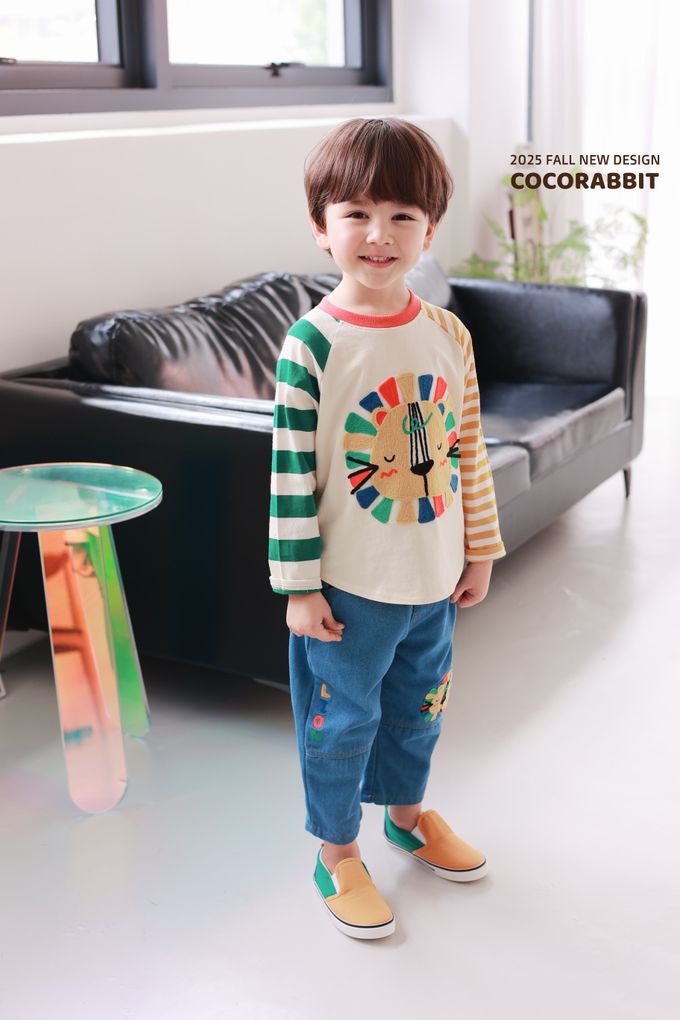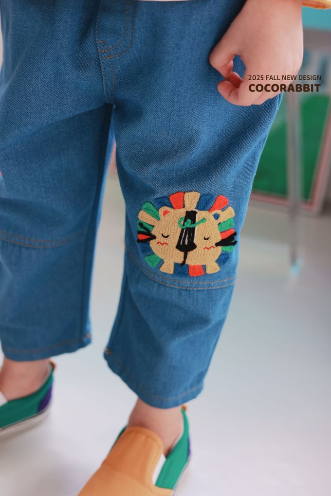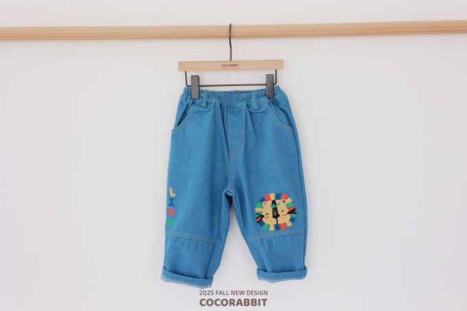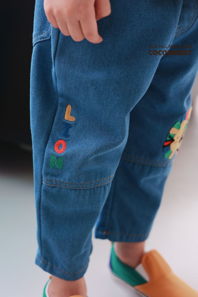 韓國南大門童裝 - Coco rabbit 鬆緊腰獅子點綴丹寧長褲-中青