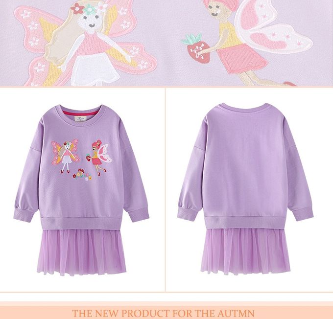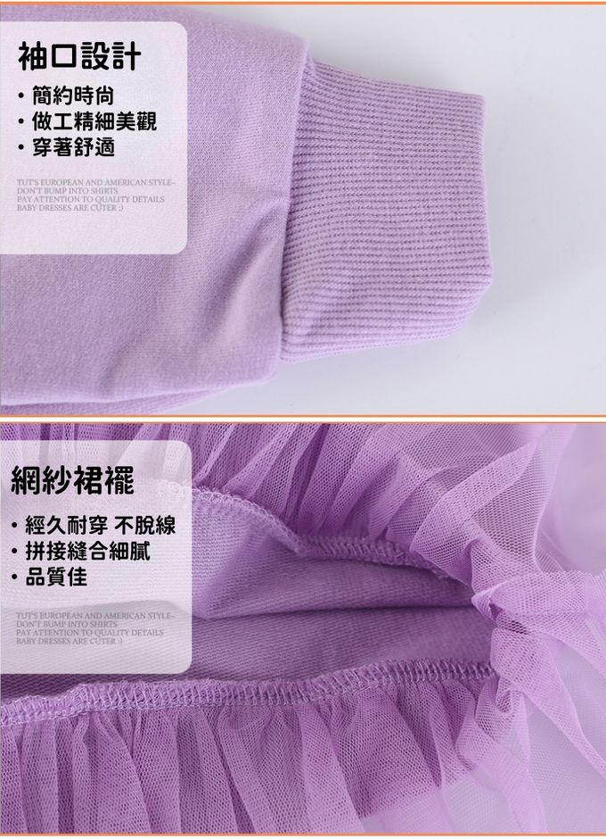 棉質圓領長袖連身網紗洋裝-蝴蝶仙子-紫色