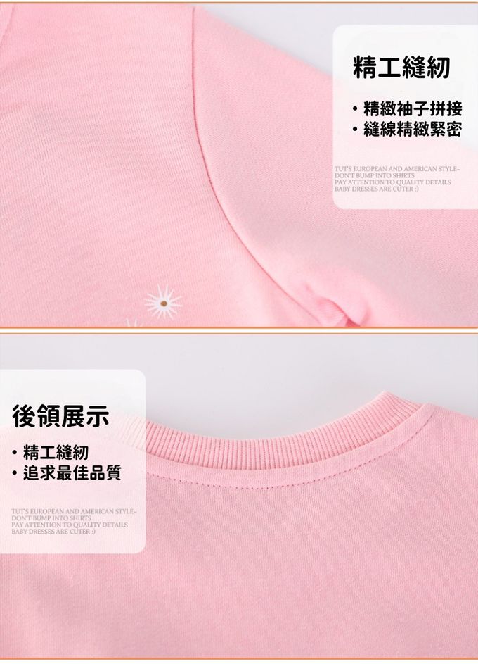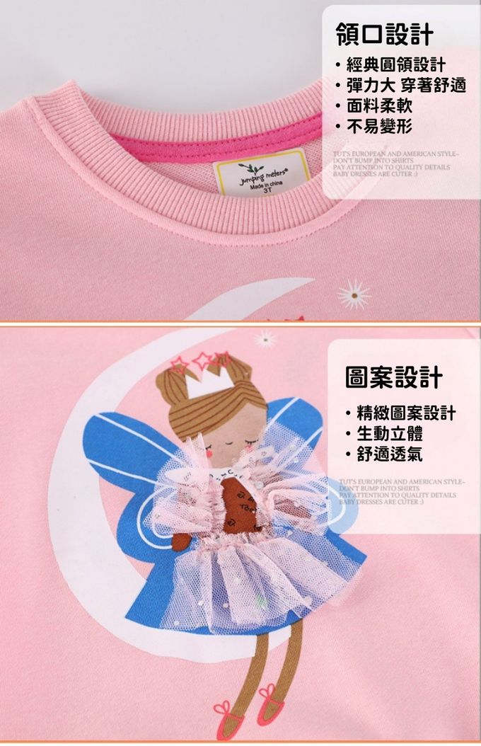 棉質圓領長袖上衣/大學T-美麗仙子-粉色