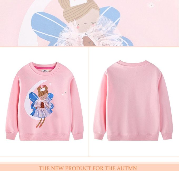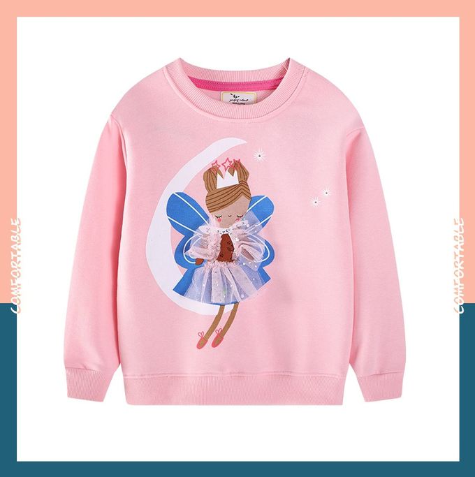 Jumping meters - 棉質圓領長袖上衣/大學T-刺繡獨角獸公主-粉色