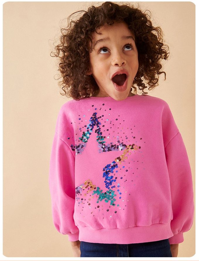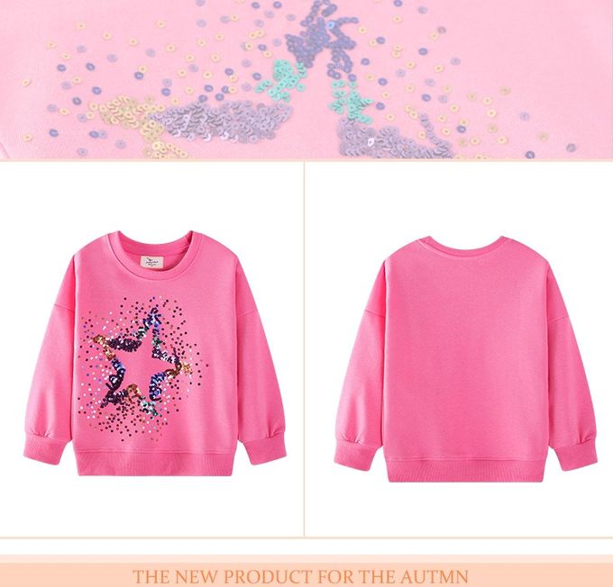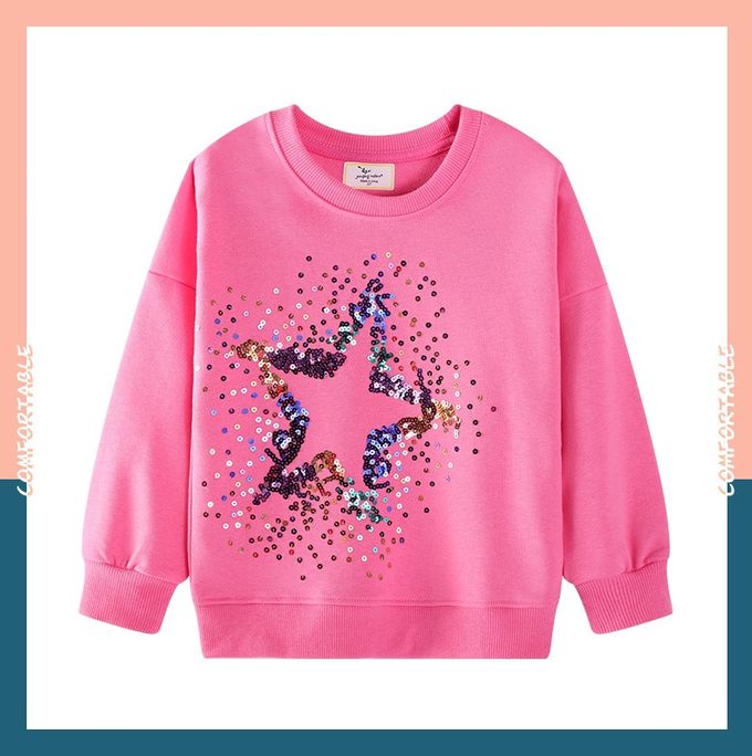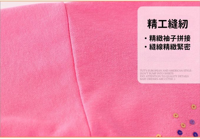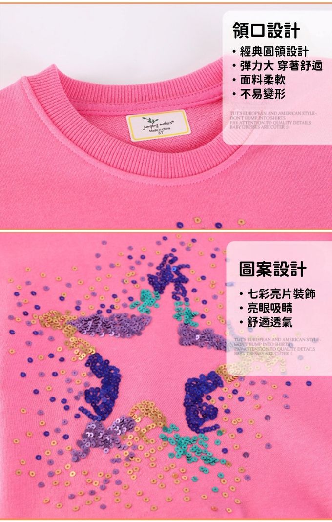 棉質圓領長袖上衣/大學T-亮片星星-粉色
